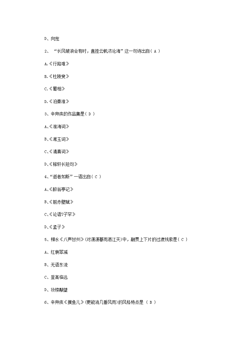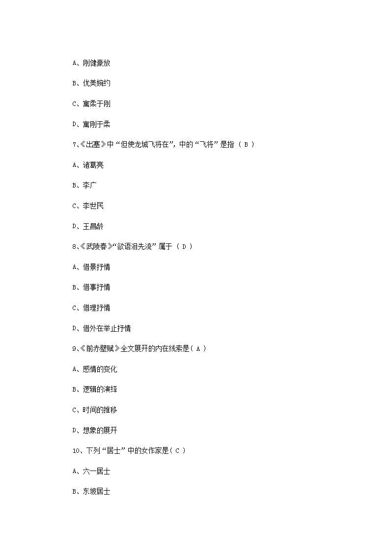 【文档名称】 2020年北京专升本大学语文模拟题三套(Word版).doc