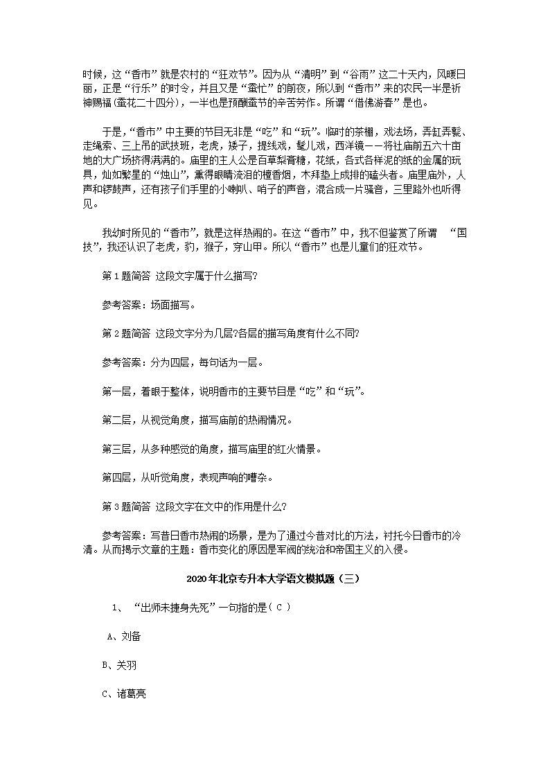 【文档预览】 无忧考网整理发布2020年北京专升本大学语文模拟题三套(Word版),前五页预览如下: