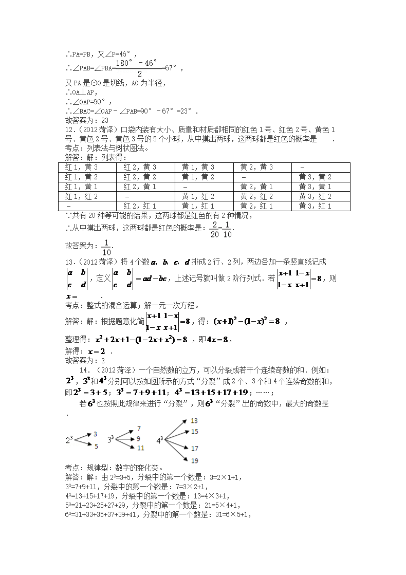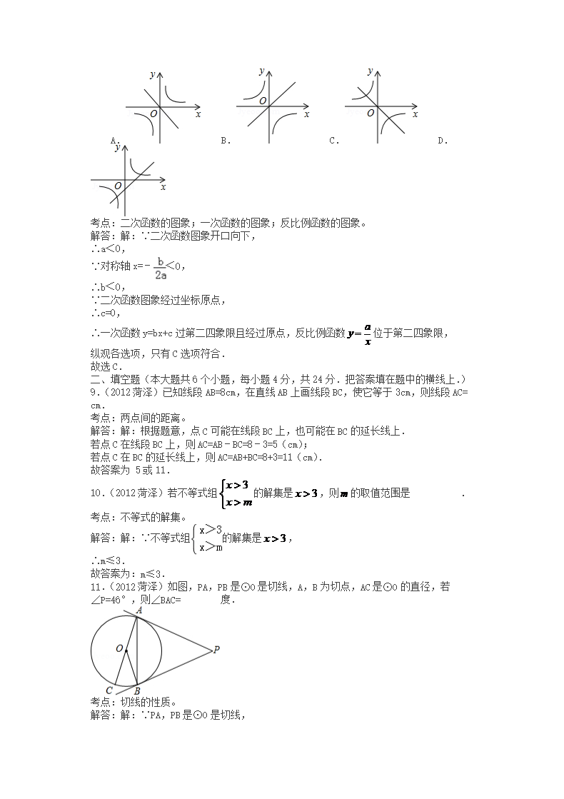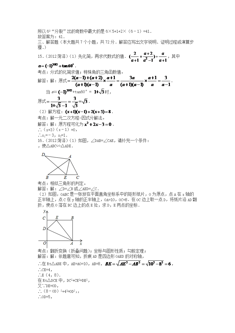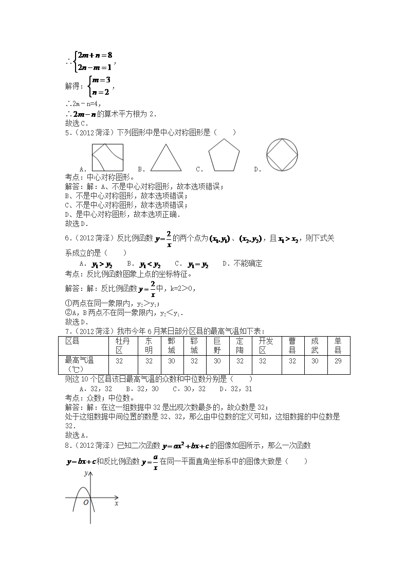 【文档名称】 2012山东省菏泽市中考数学真题及答案(Word版).doc