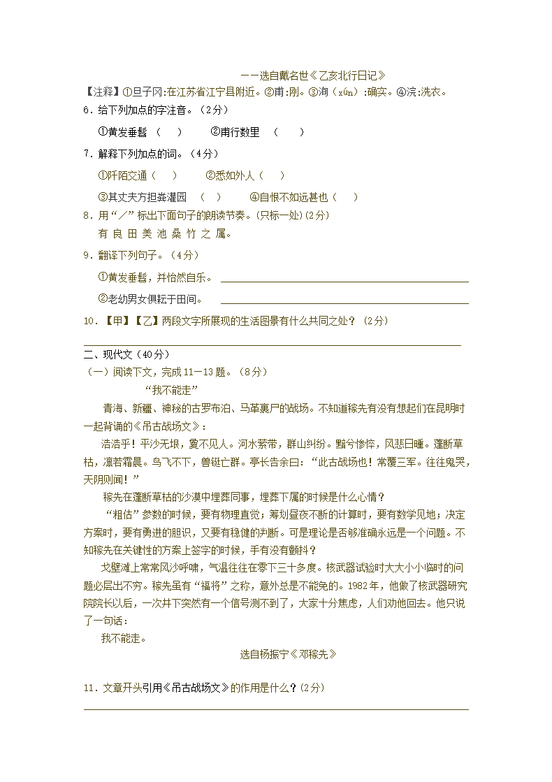 【文档名称】 2011山东省菏泽市中考语文真题及答案(Word版).doc
