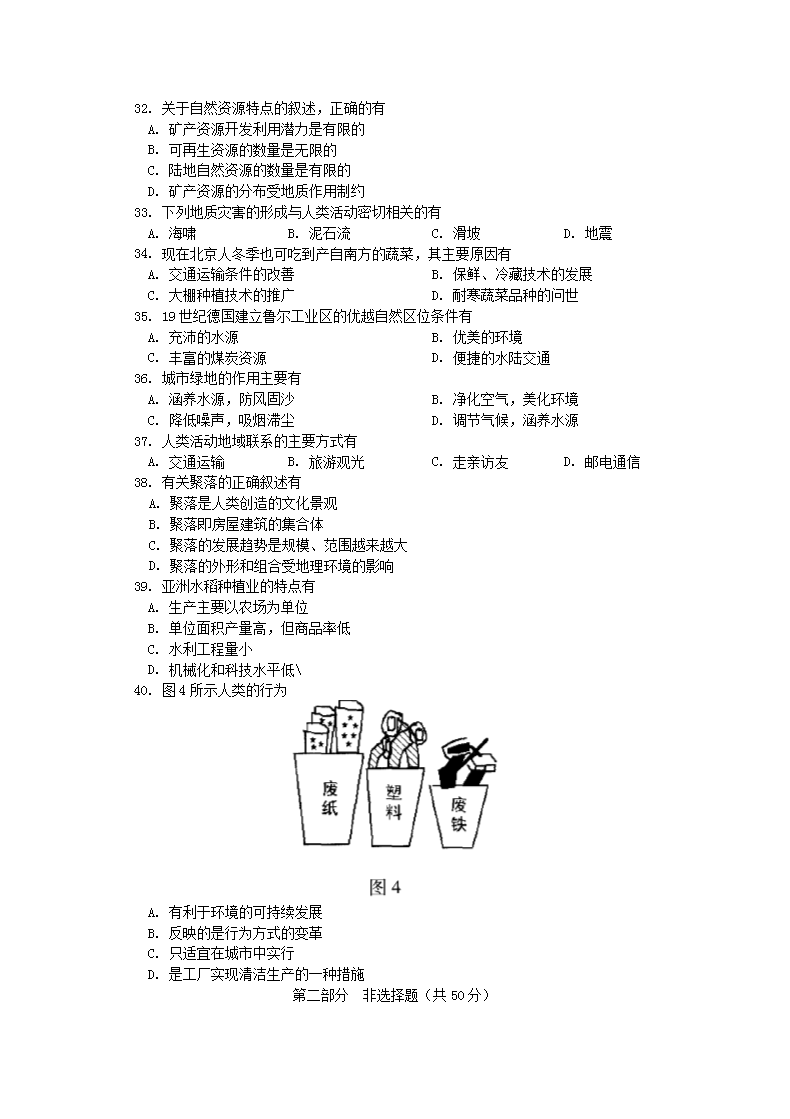 【文档名称】 2008年北京普通高中会考地理真题及答案(Word版).doc