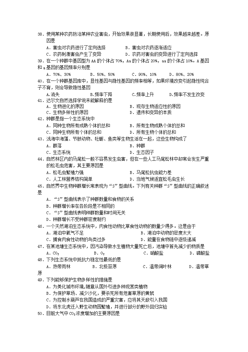 【文档名称】 2008年北京普通高中会考生物真题及答案(Word版).doc