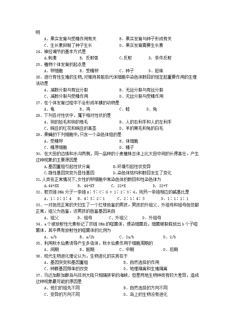 【文档预览】 无忧考网整理发布2008年北京普通高中会考生物真题及答案(Word版),前五页预览如下:
