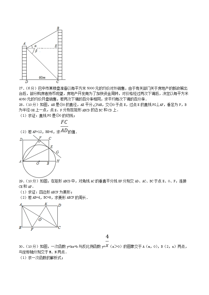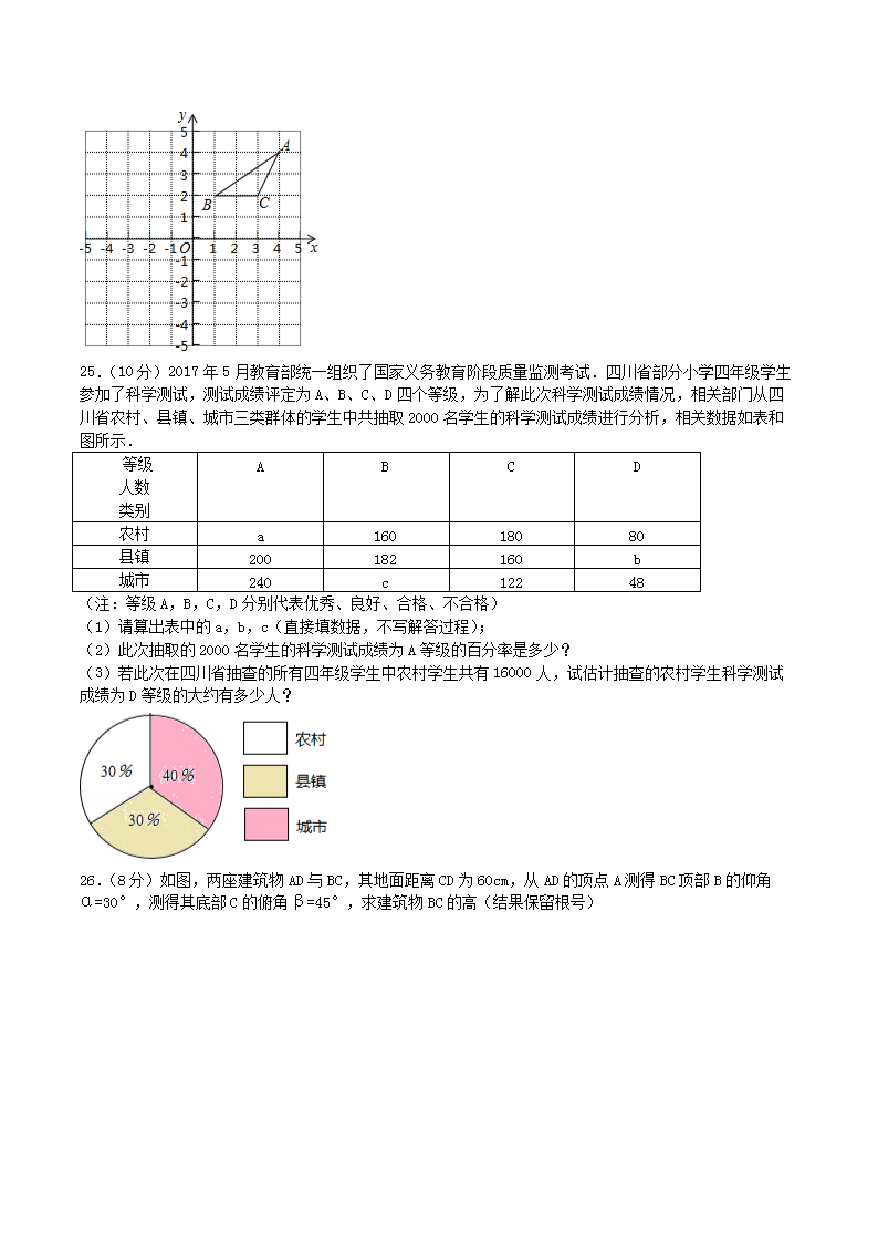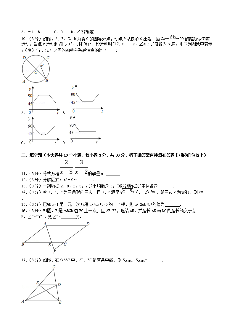 【文档名称】 2017年四川省巴中市中考数学真题及答案(Word版).doc