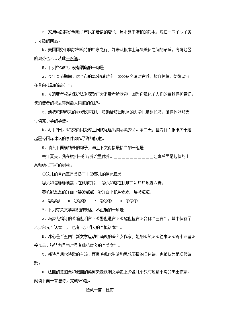 【文档预览】 无忧考网整理发布1999年浙江高考语文真题及答案(Word版),前五页预览如下: