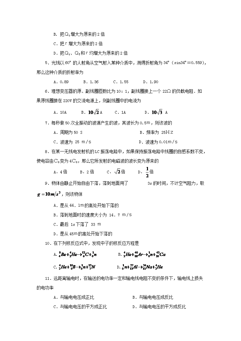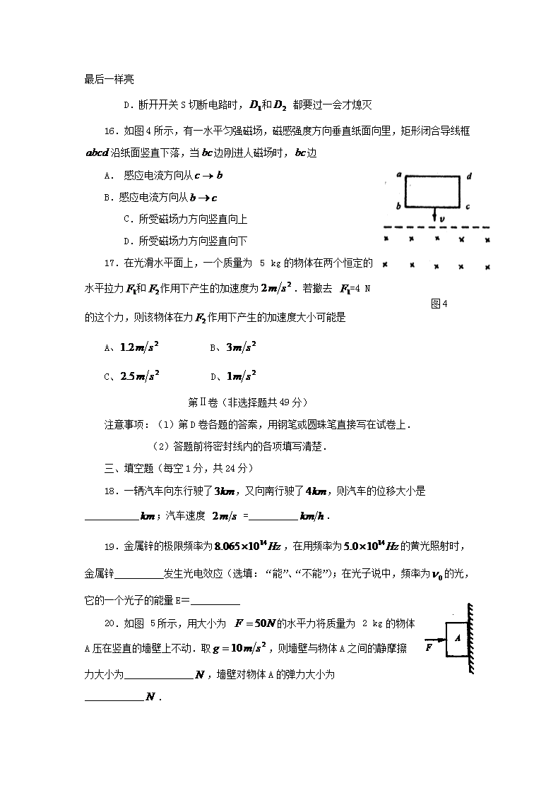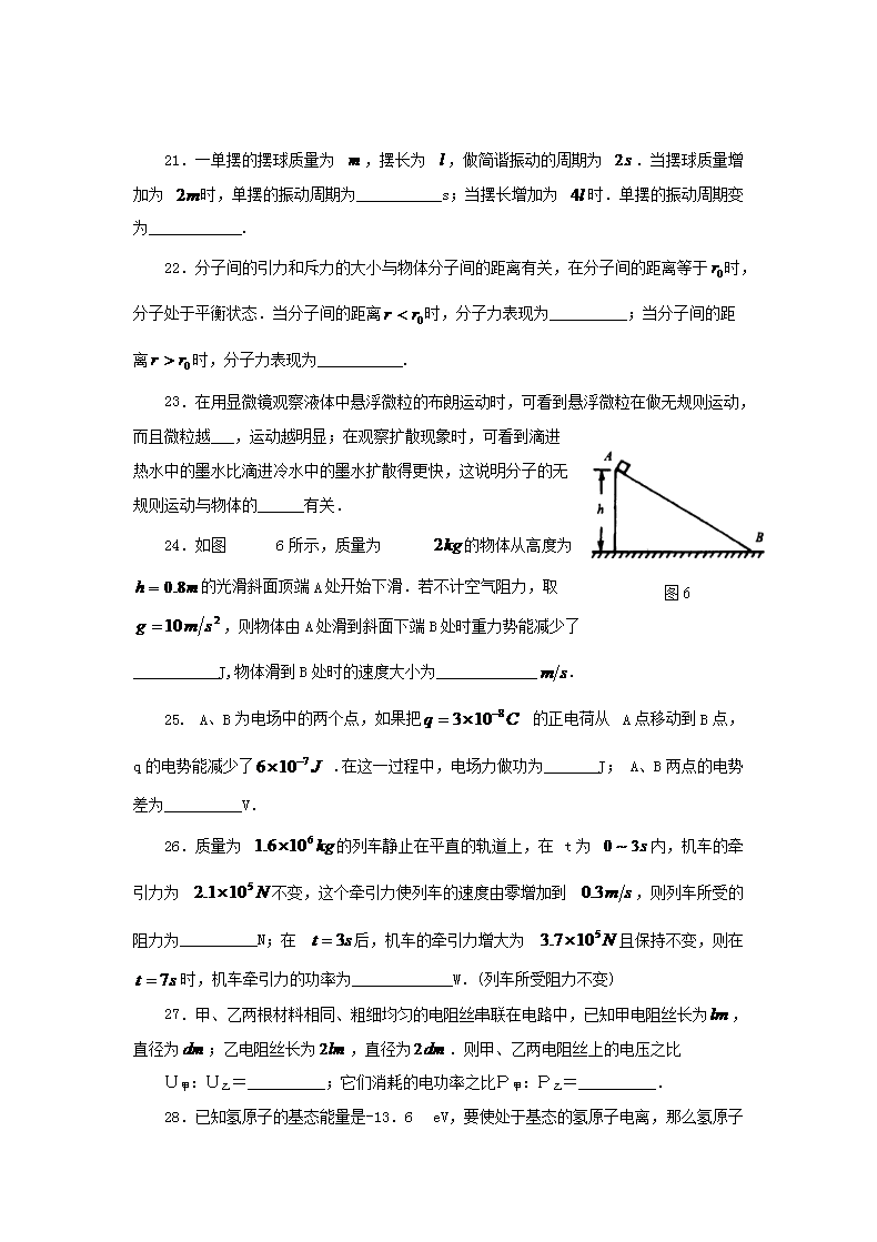 【文档名称】 2001年四川普通高中会考物理考试真题(Word版).doc