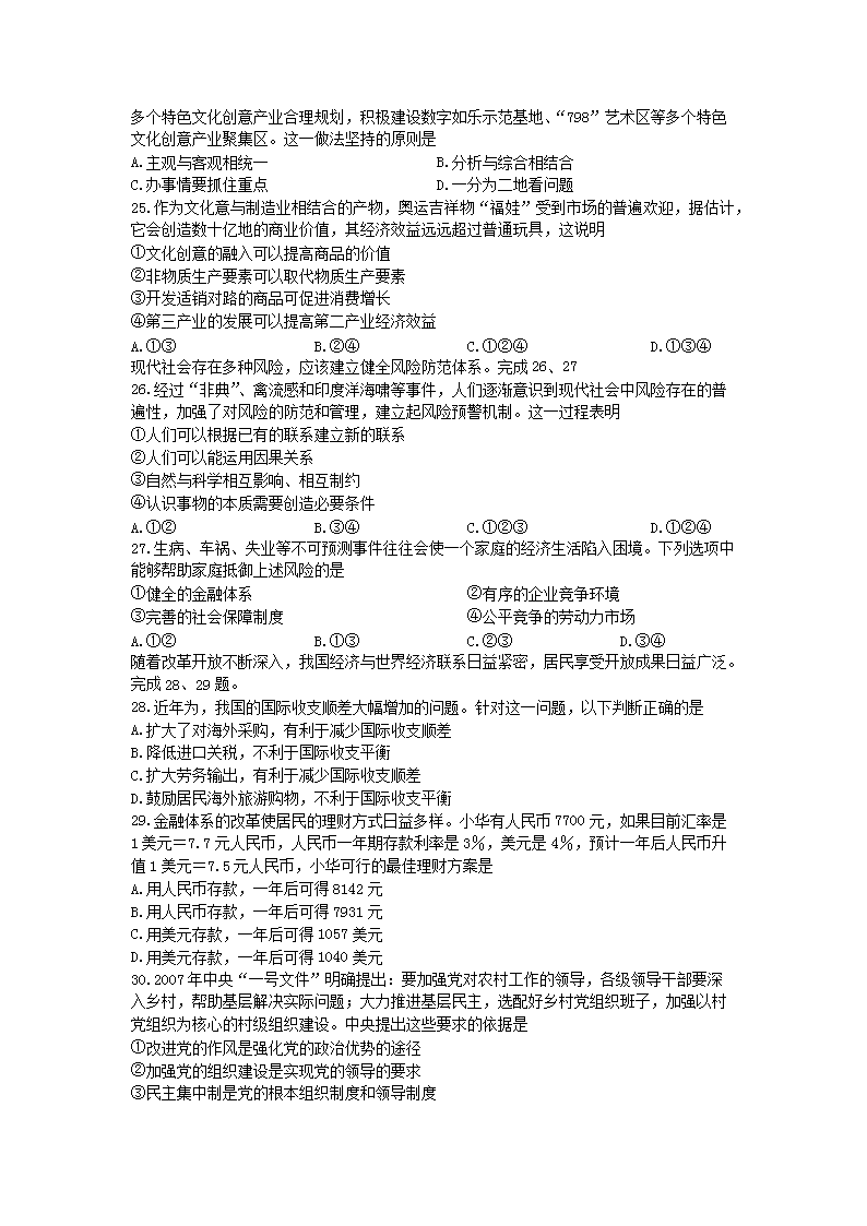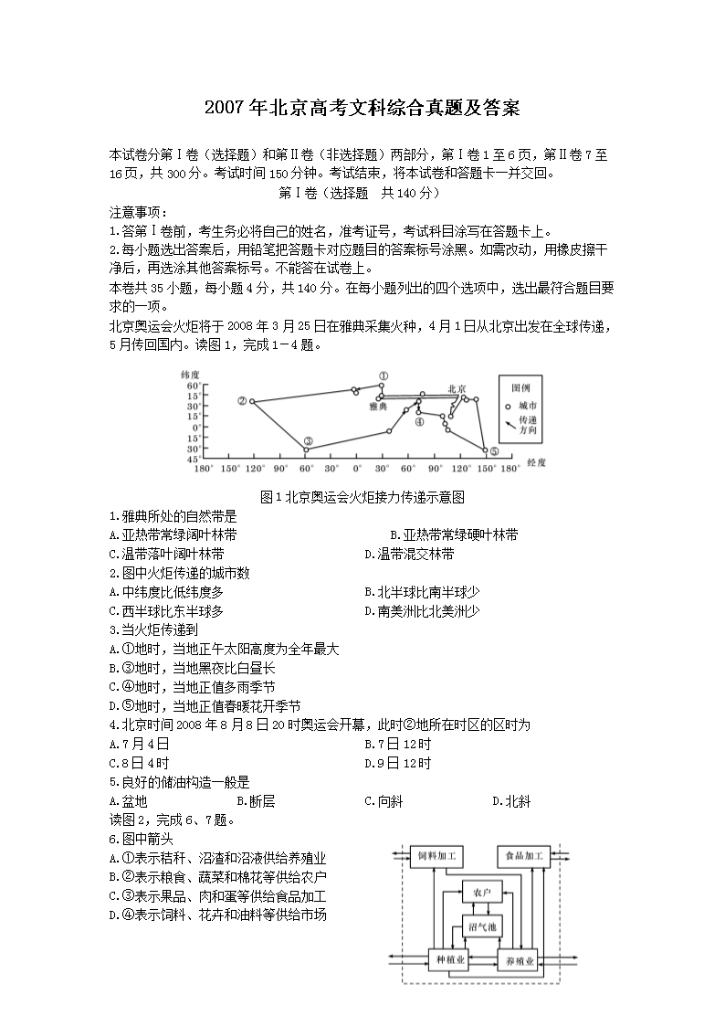 【文档名称】 2007年北京高考文科综合真题及答案(Word版).doc