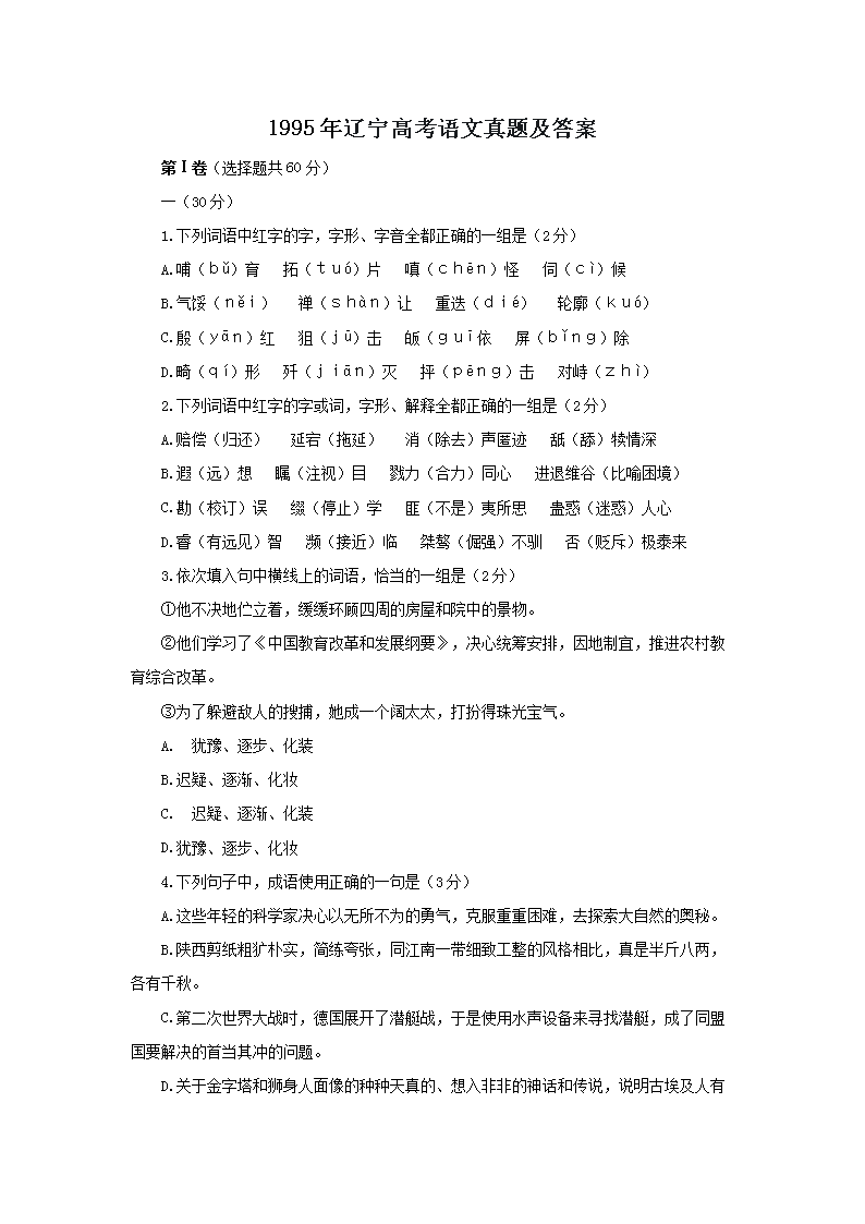 【文档名称】 1995年辽宁高考语文真题及答案(Word版).doc