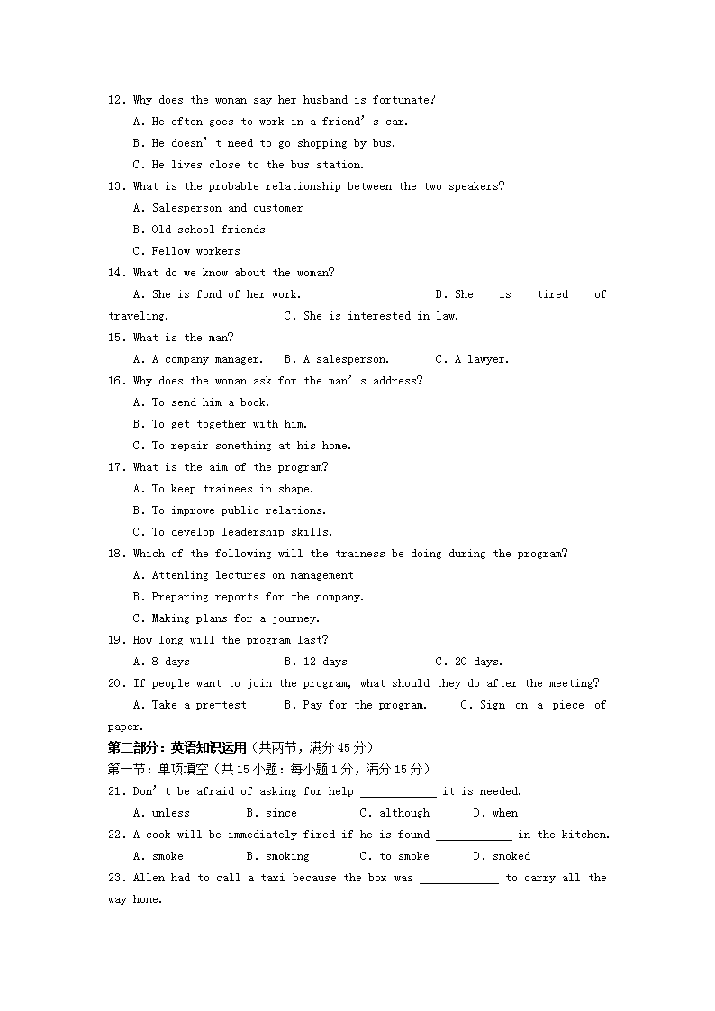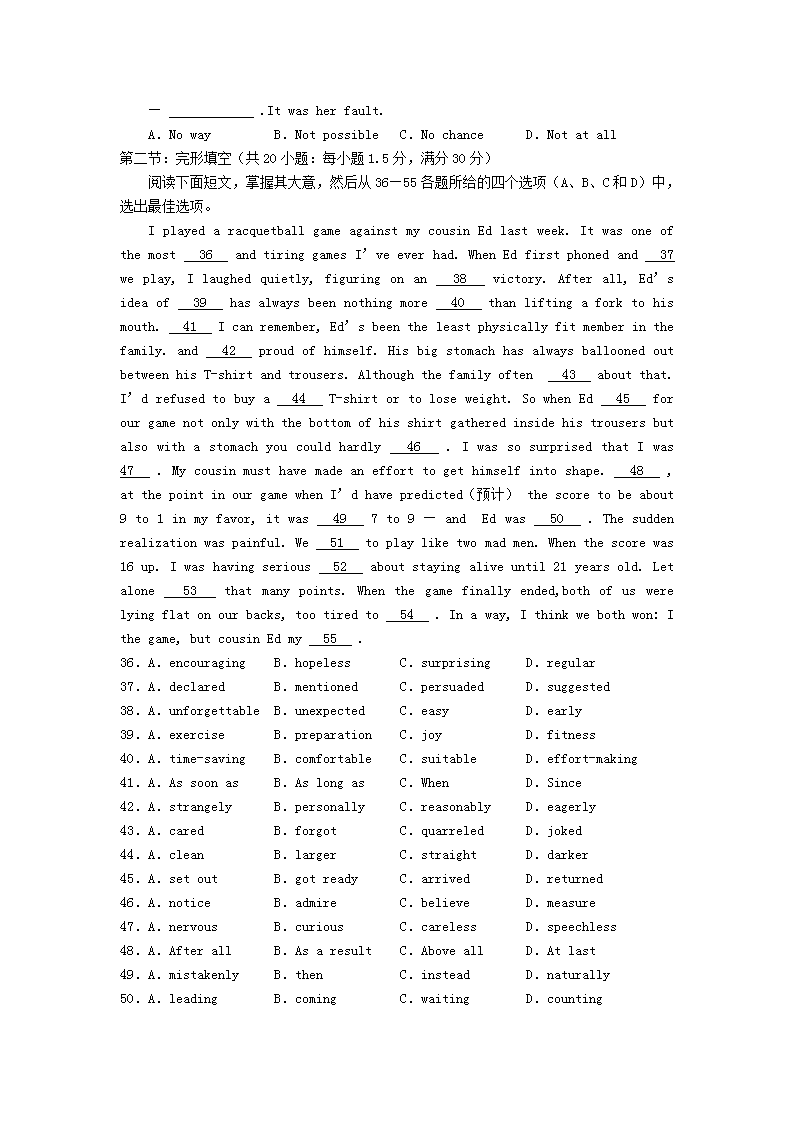 【文档预览】 无忧考网整理发布2003年浙江高考英语真题及答案(Word版),前五页预览如下: