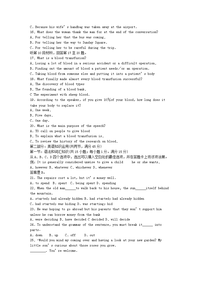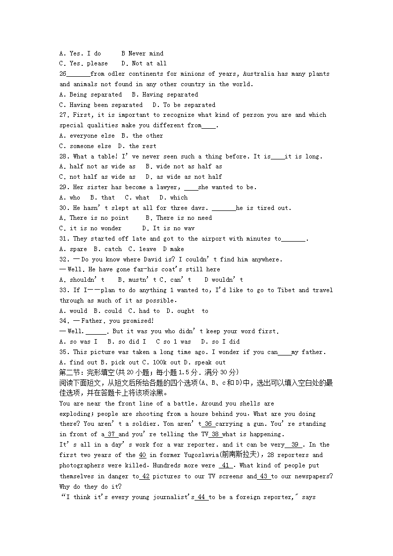 【文档名称】 2005年湖北高考英语真题及答案(Word版).doc