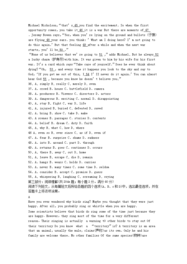 【文档预览】 无忧考网整理发布2005年湖北高考英语真题及答案(Word版),前五页预览如下: