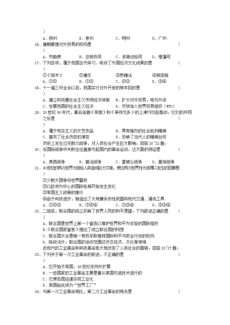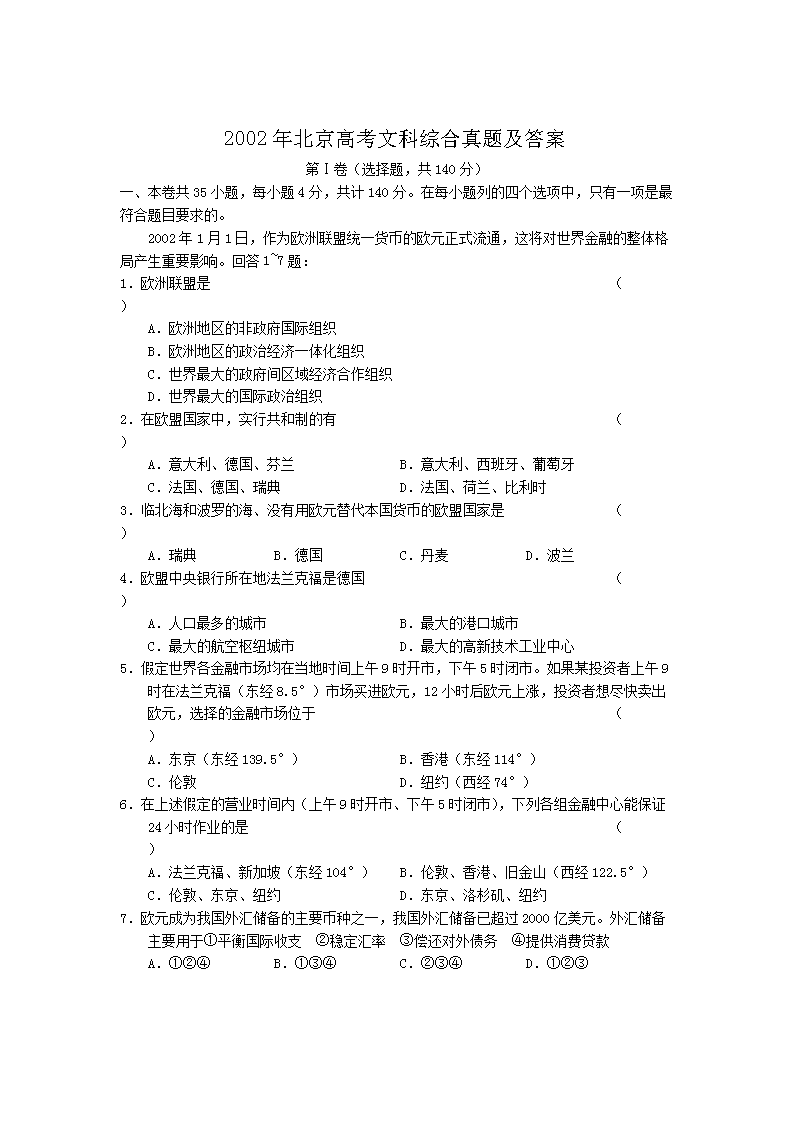 【文档名称】 2002年北京高考文科综合真题及答案(Word版).doc