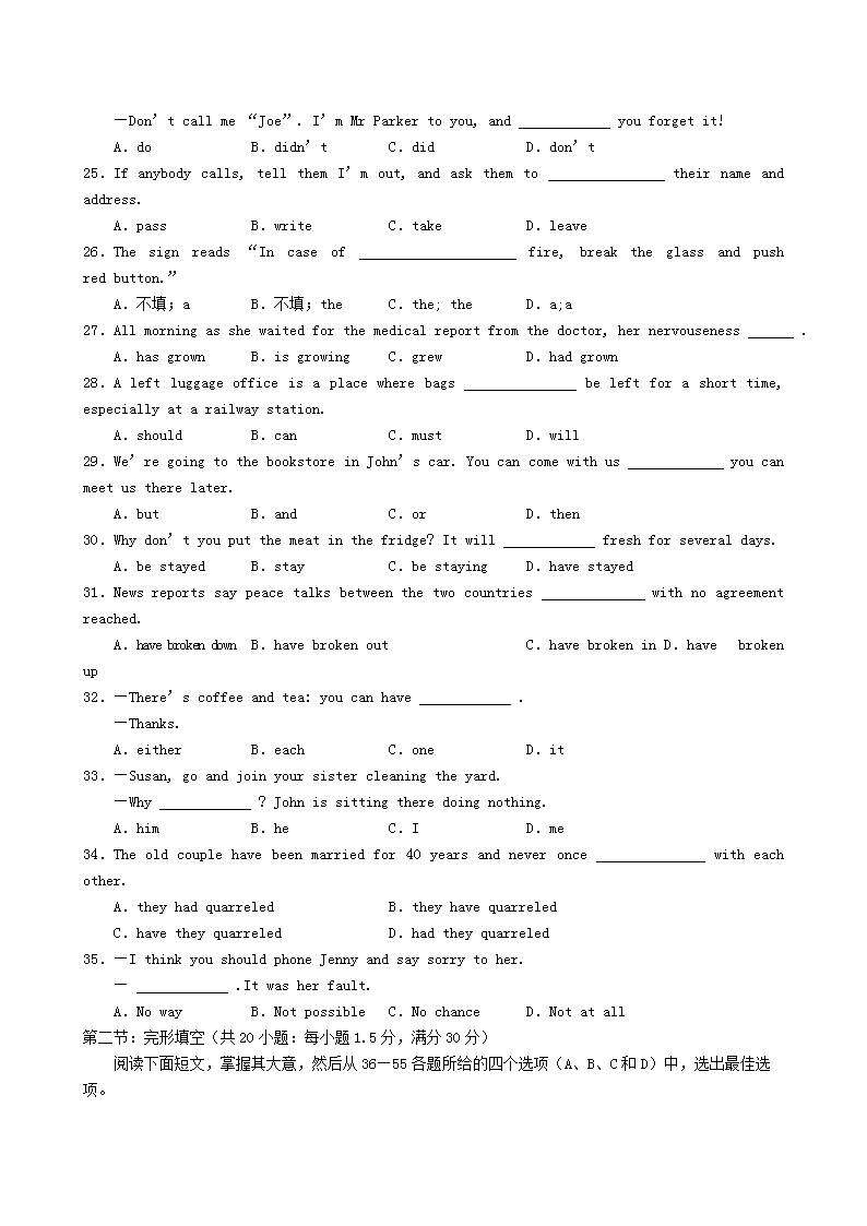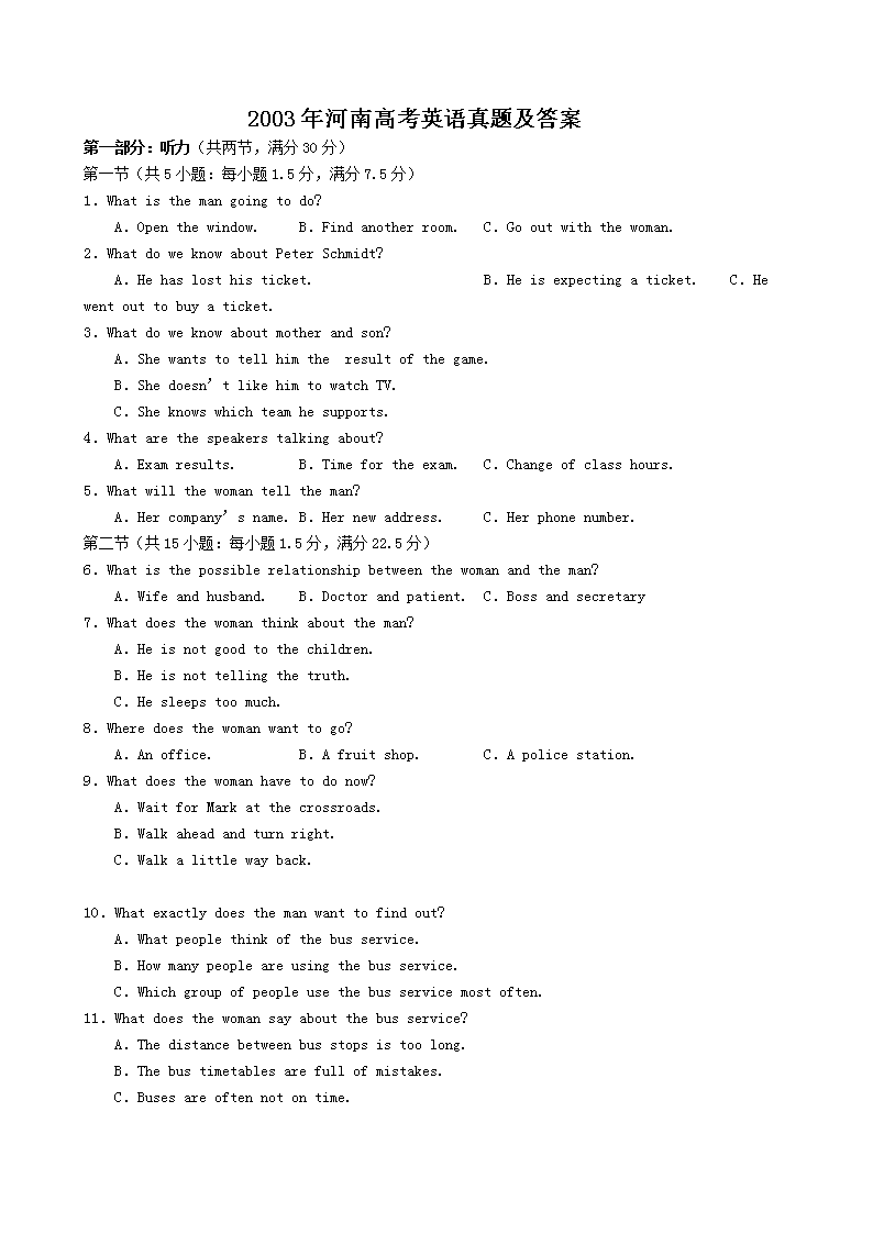 【文档名称】 2003年河南高考英语真题及答案(Word版).doc
