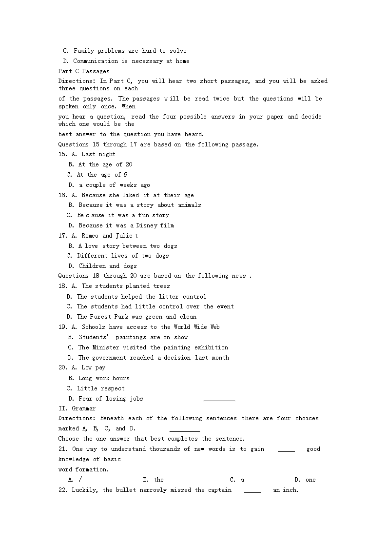 【文档预览】 无忧考网整理发布2002年上海高考英语真题及答案(Word版),前五页预览如下: