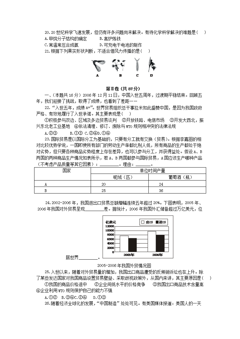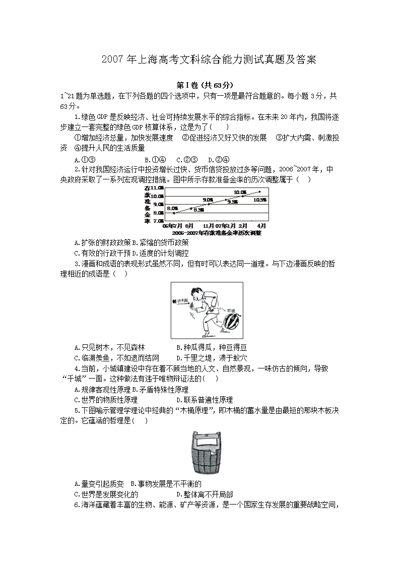 【文档名称】 2007年上海高考文科综合能力测试真题及答案(Word版).doc