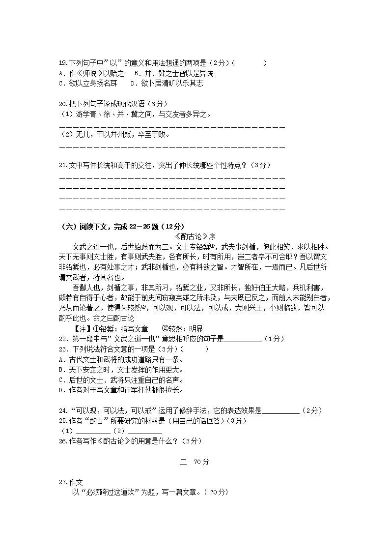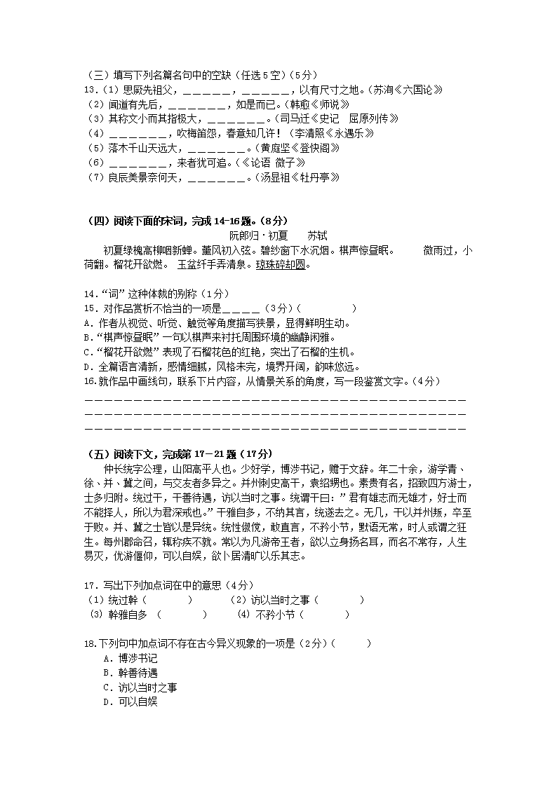 【文档名称】 2007年上海高考语文真题及答案(Word版).doc