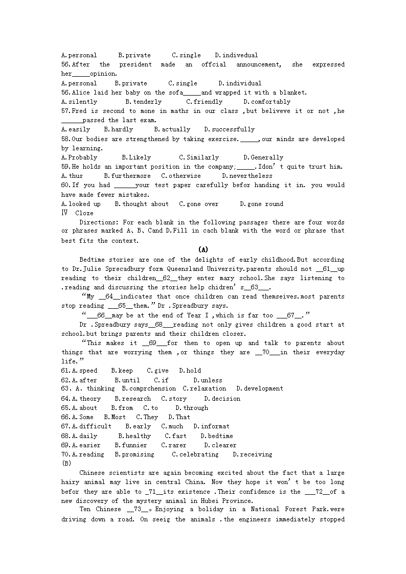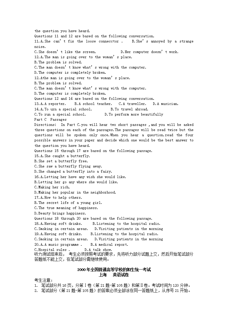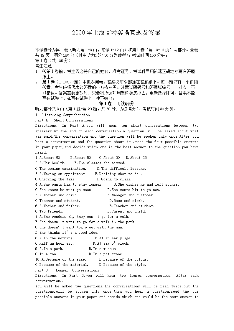 【文档预览】 无忧考网整理发布2000年上海高考英语真题及答案(Word版),前五页预览如下: