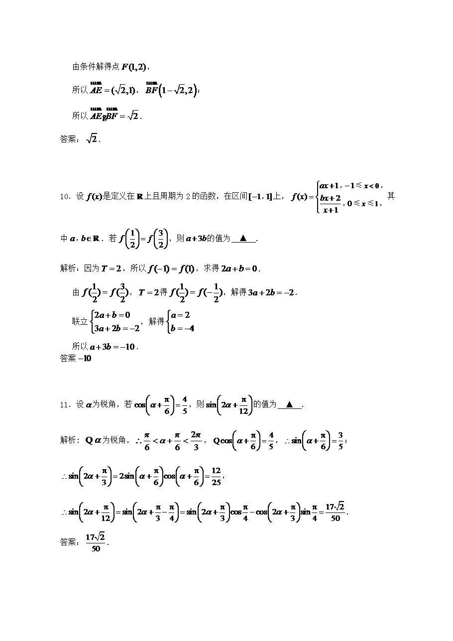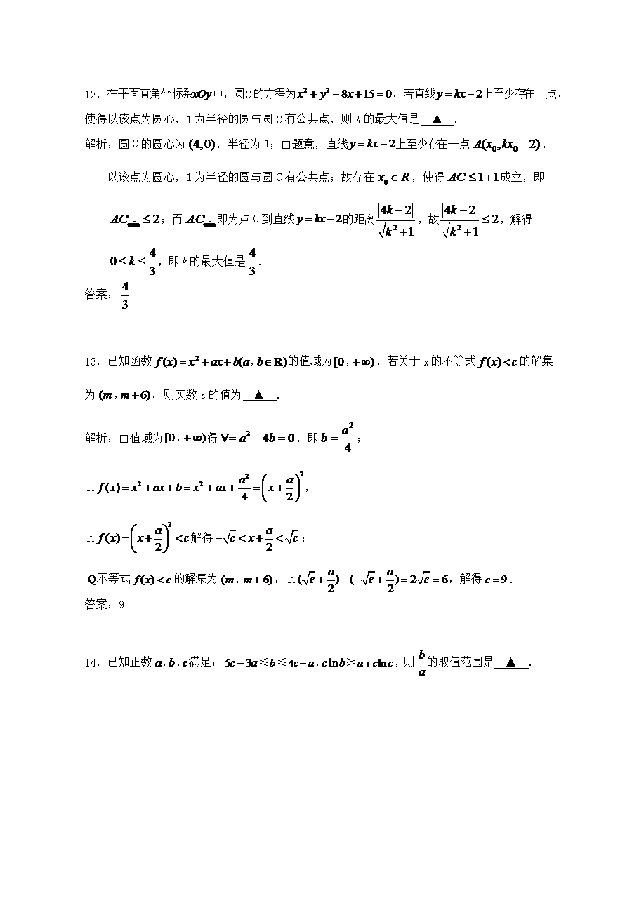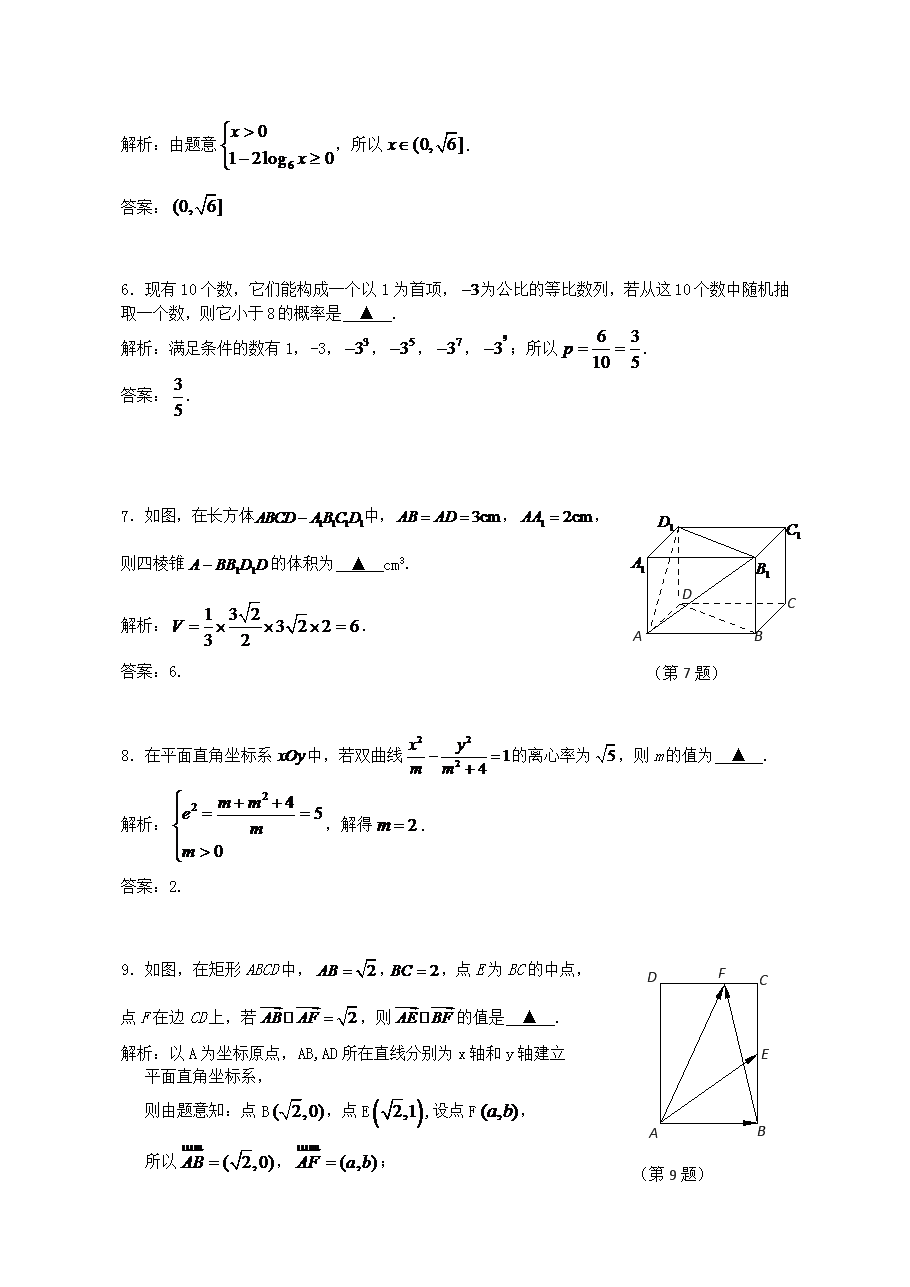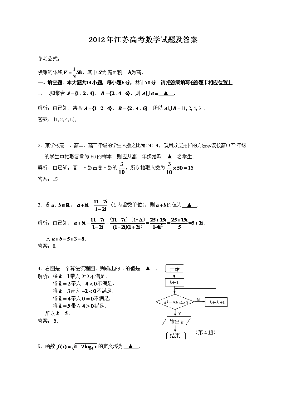 【文档名称】 2012年江苏高考数学试题及答案(Word版).doc