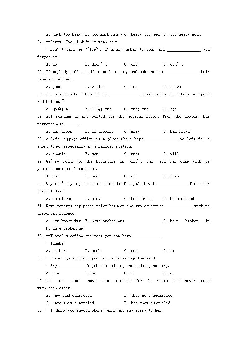 【文档名称】 2003年湖南高考英语真题及答案(Word版).doc