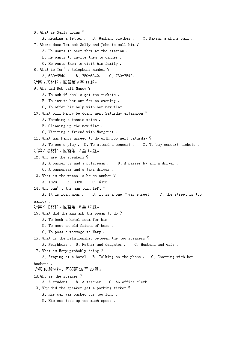 【文档名称】 2001年北京高考英语真题及答案(Word版).doc