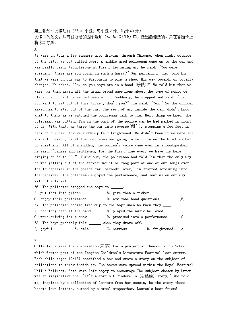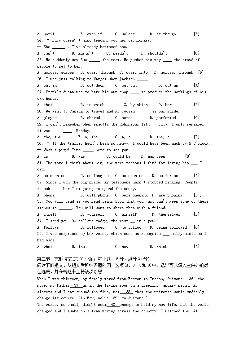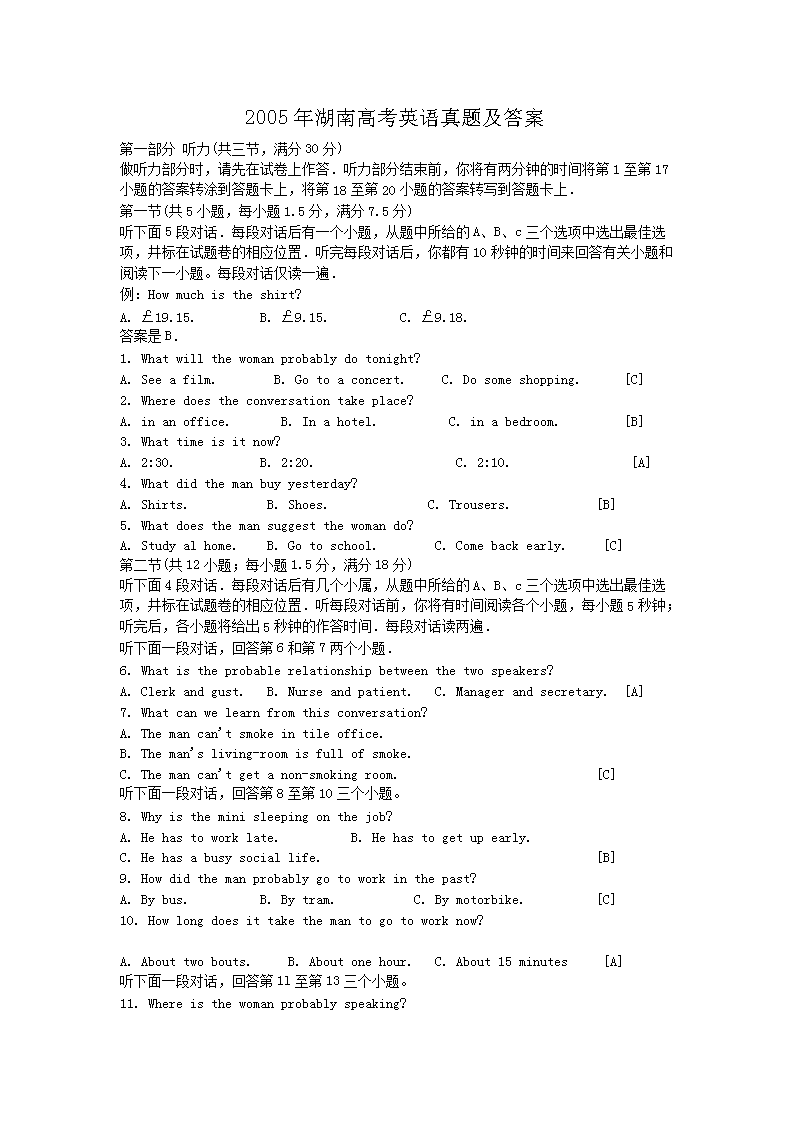 【文档名称】 2005年湖南高考英语真题及答案(Word版).doc