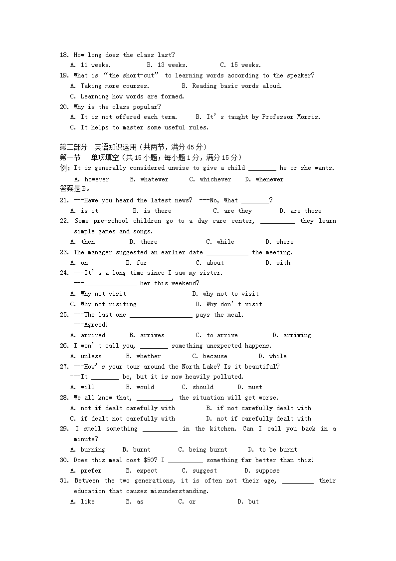 【文档预览】 无忧考网整理发布2007年海南高考英语真题及答案(Word版),前五页预览如下: