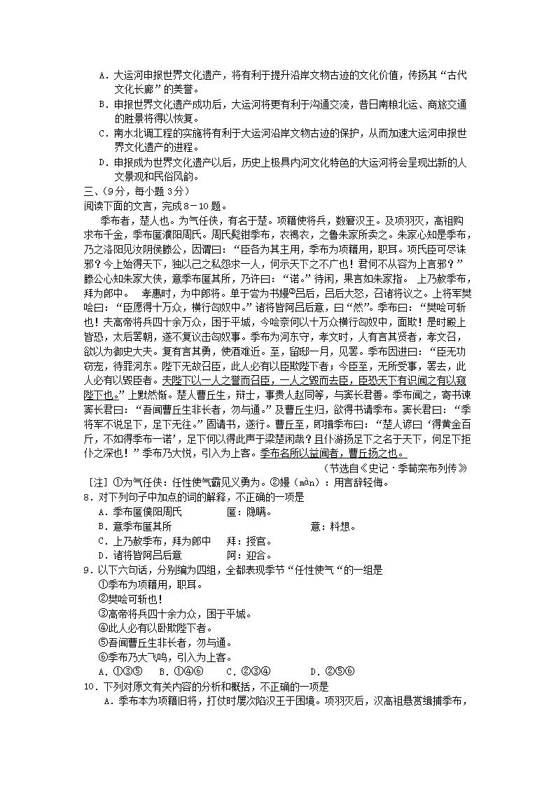 【文档名称】 2006年内蒙古高考语文真题及答案(Word版).doc