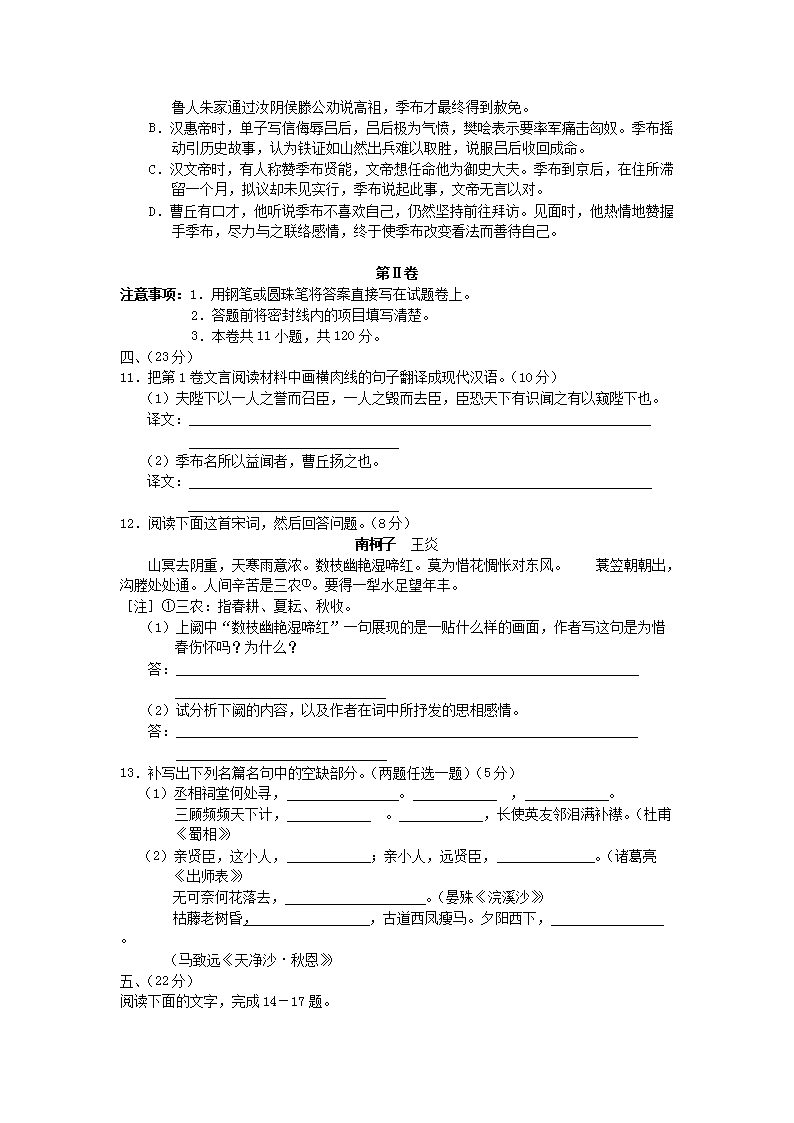 【文档预览】 无忧考网整理发布2006年内蒙古高考语文真题及答案(Word版),前五页预览如下: