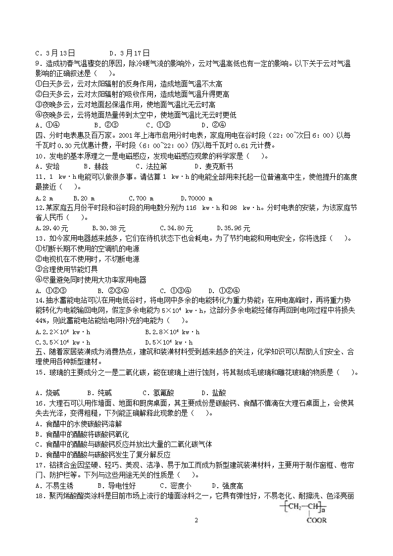 【文档名称】 2004年上海高考理科综合真题及答案(Word版).doc