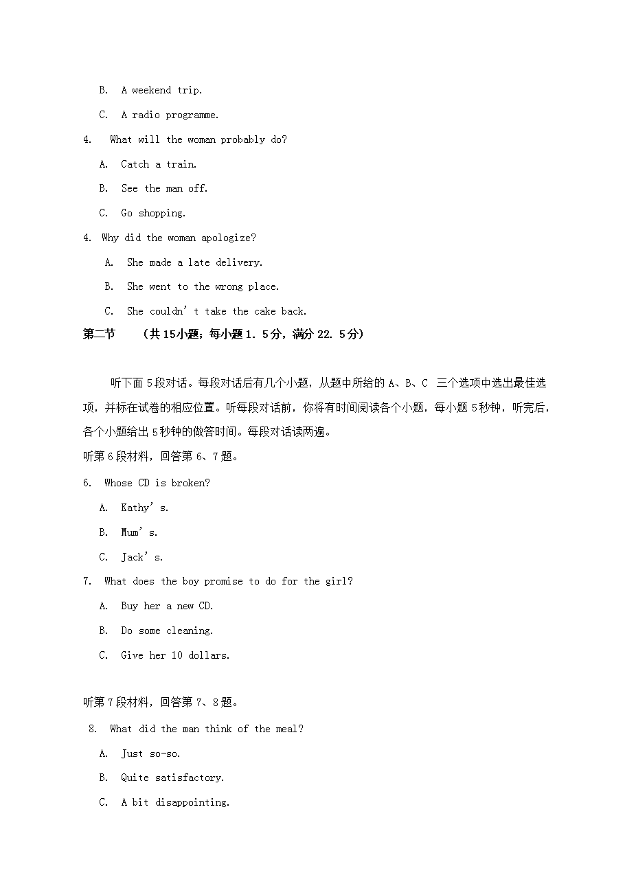 【文档名称】 2012年辽宁高考英语试题及答案(Word版).doc