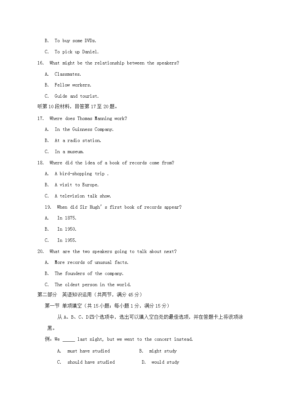 【文档预览】 无忧考网整理发布2012年辽宁高考英语试题及答案(Word版),前五页预览如下: