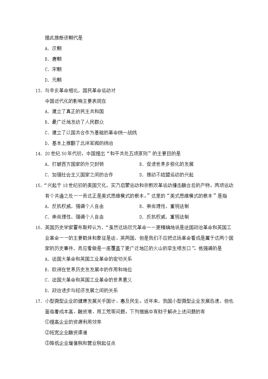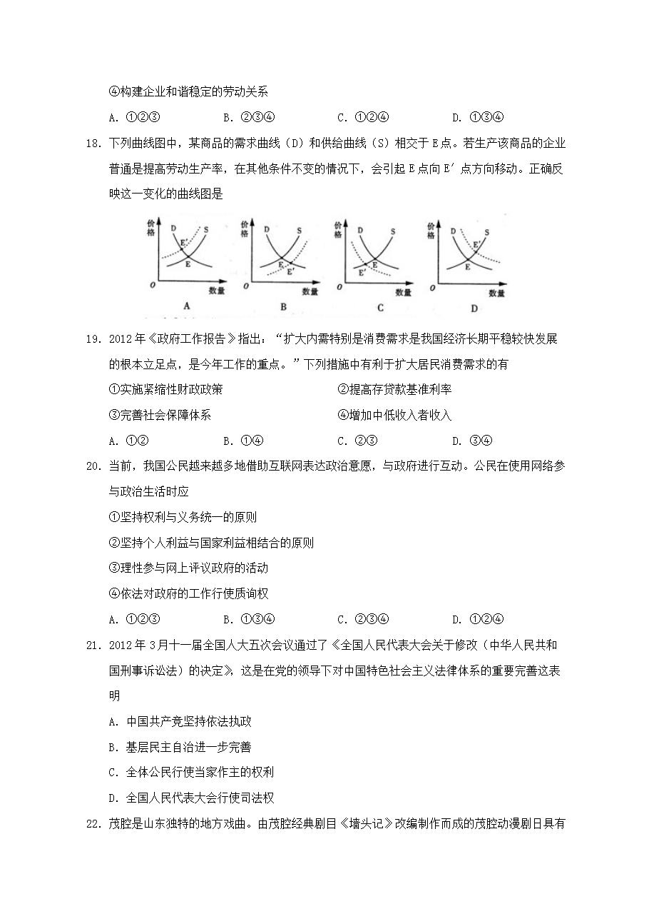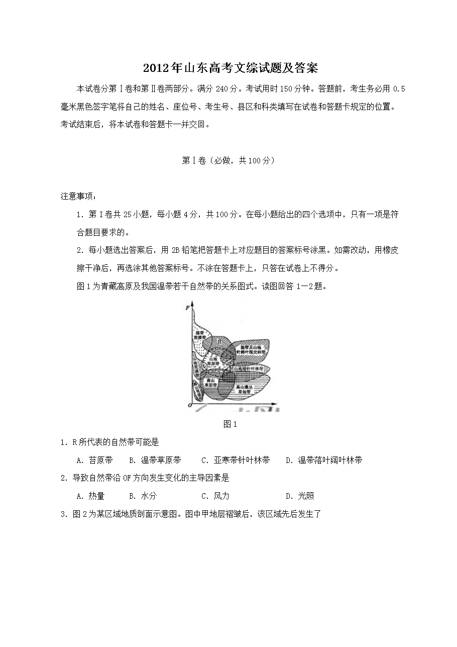 【文档名称】 2012年山东高考文综试题及答案(Word版).doc