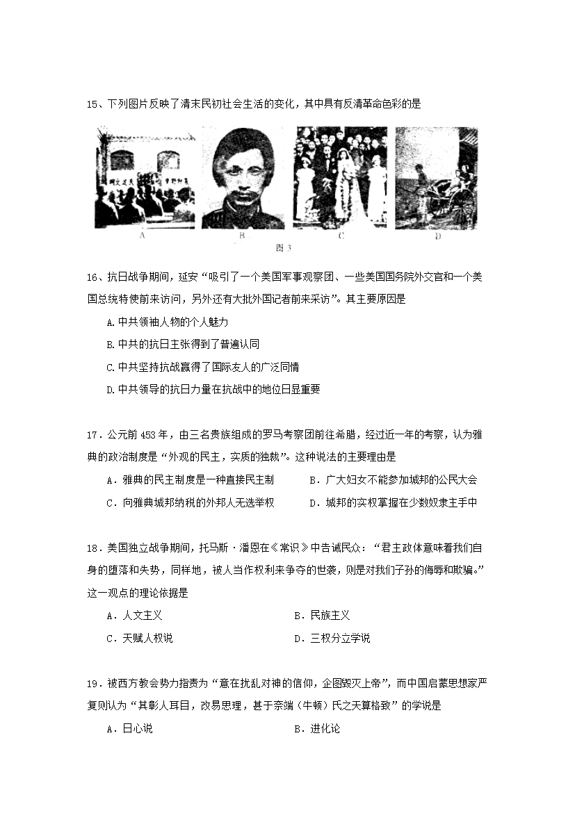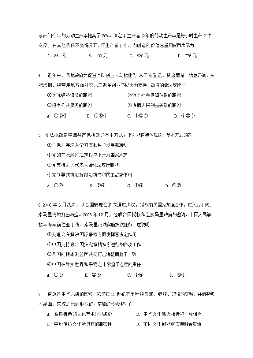 【文档预览】 无忧考网整理发布2009年安徽高考文综试题及答案(Word版),前五页预览如下: