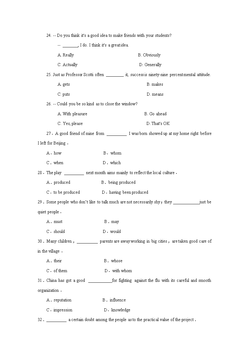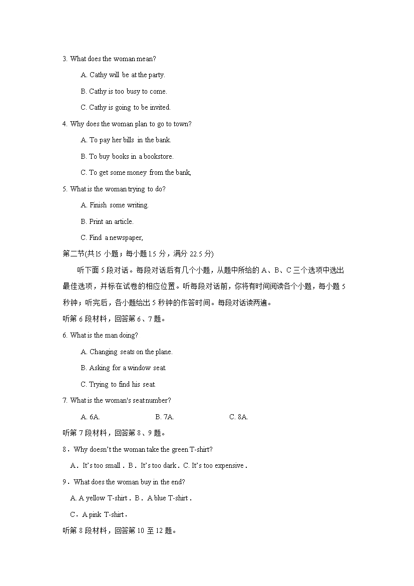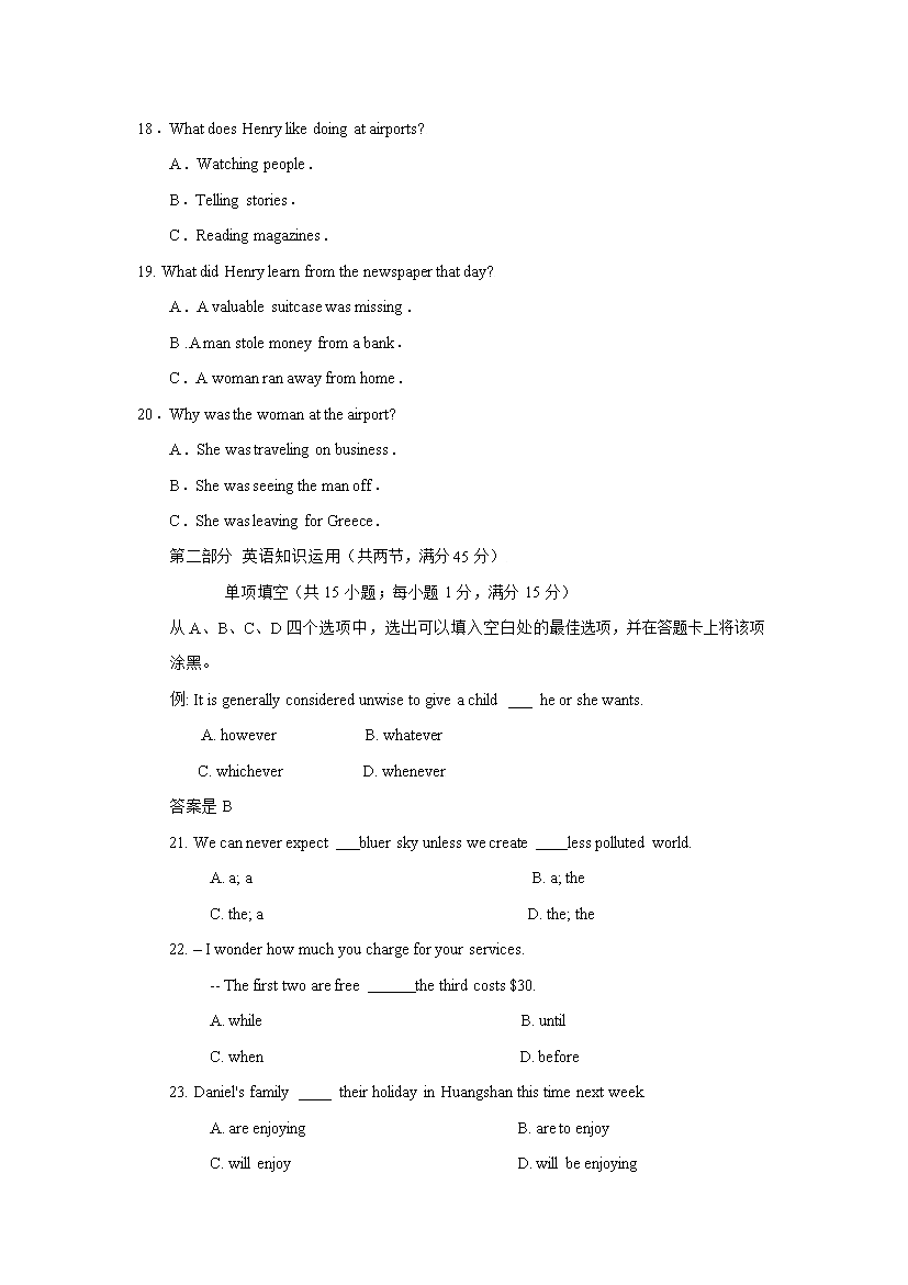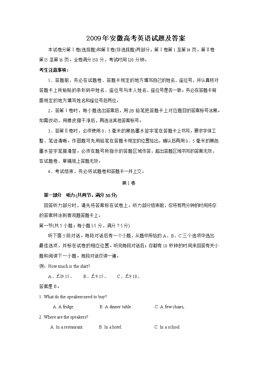 【文档预览】 无忧考网整理发布2009年安徽高考英语试题及答案(Word版),前五页预览如下: