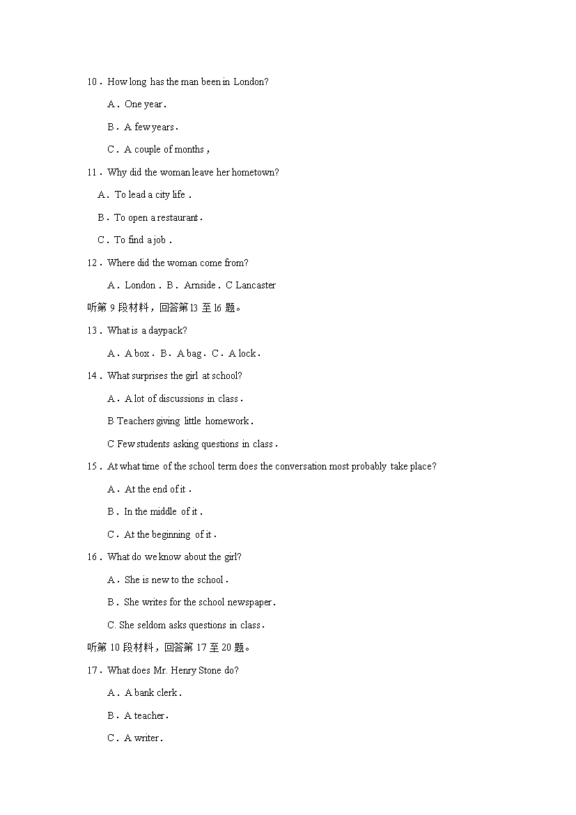 【文档名称】 2009年安徽高考英语试题及答案(Word版).doc