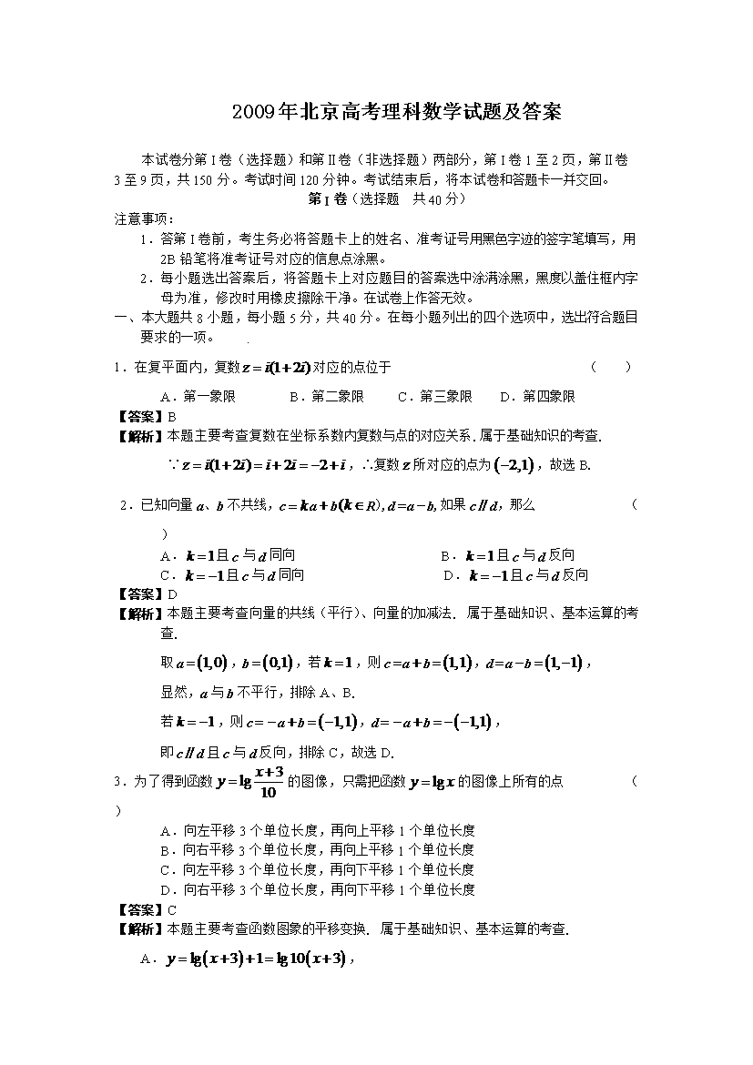 【文档预览】 无忧考网整理发布2009年北京高考理科数学试题及答案(Word版),前五页预览如下: