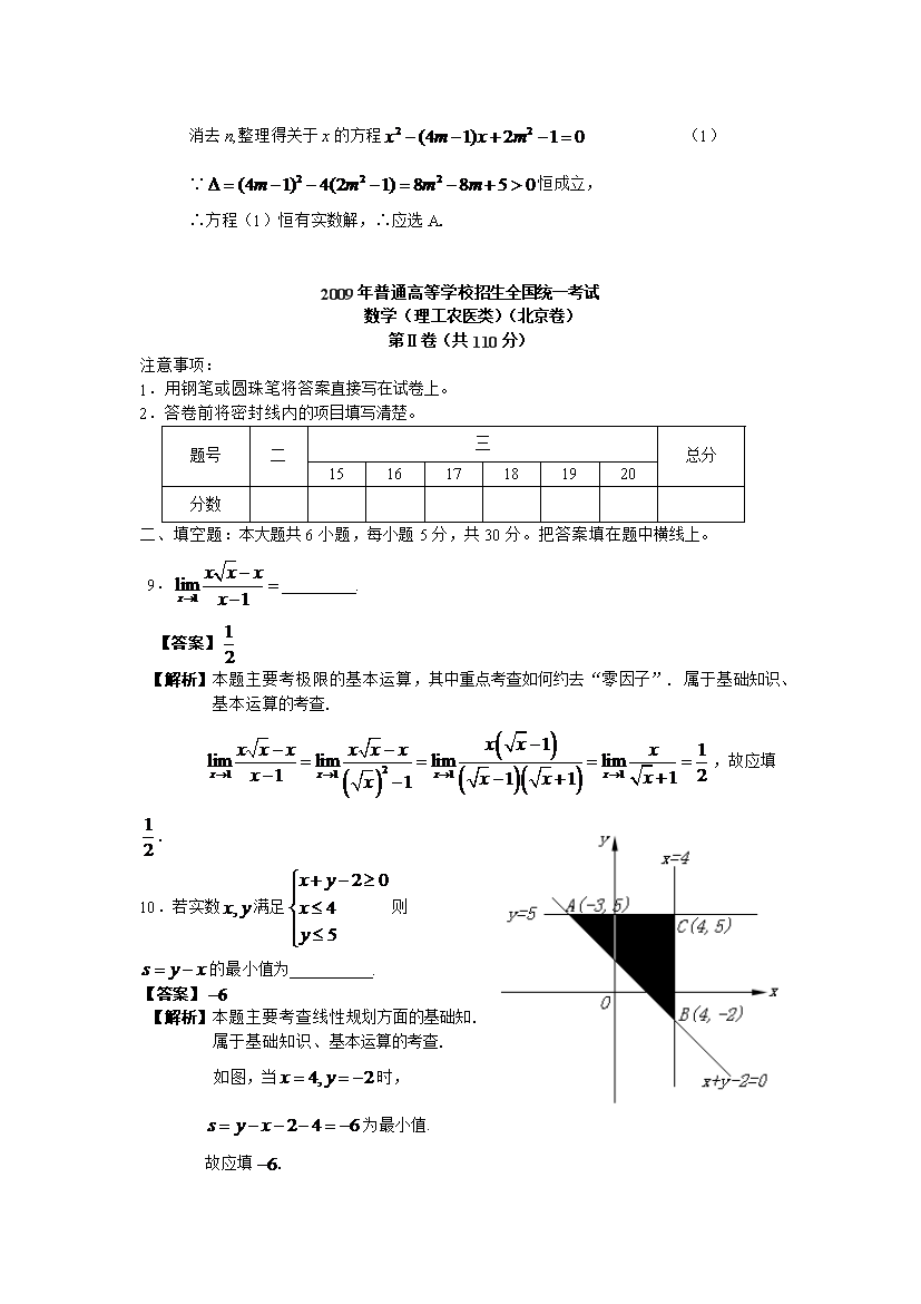 【文档名称】 2009年北京高考理科数学试题及答案(Word版).doc