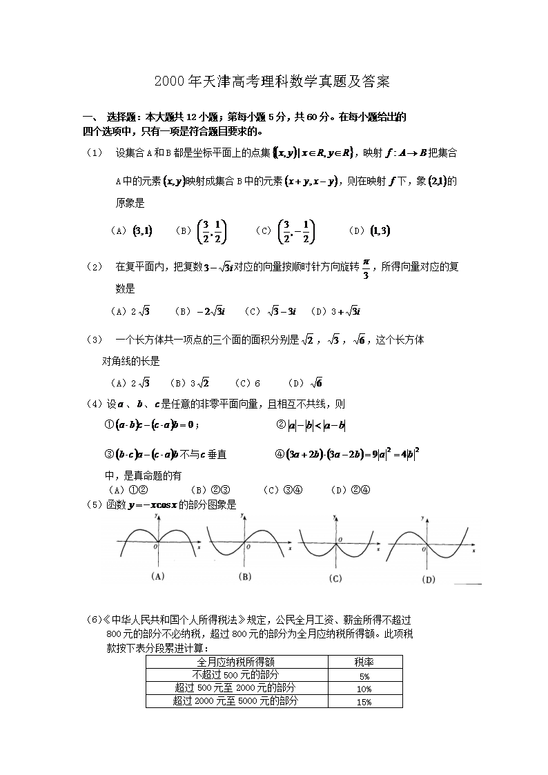 【文档预览】 无忧考网整理发布2000年天津高考理科数学真题及答案(Word版),前五页预览如下: