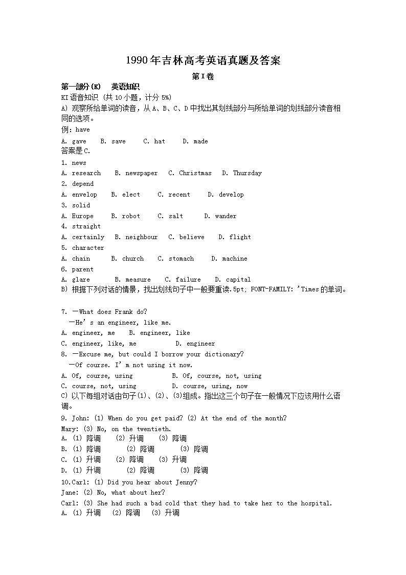 【文档名称】 1990年吉林高考英语真题及答案(Word版).doc