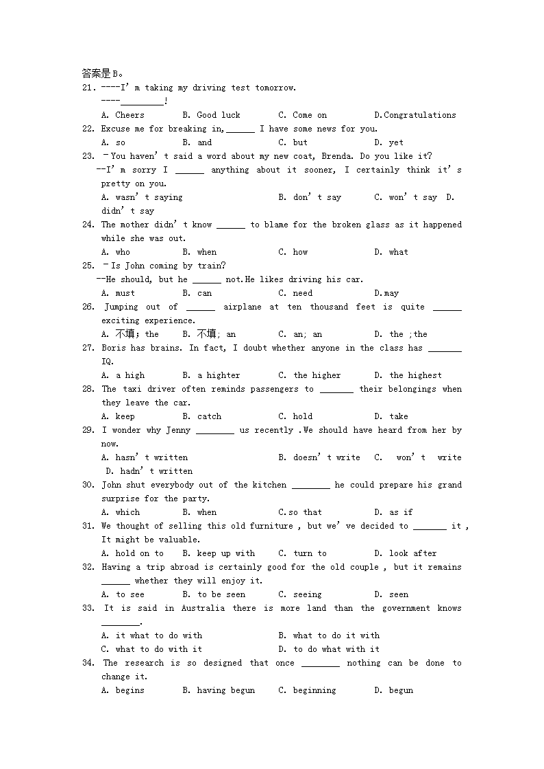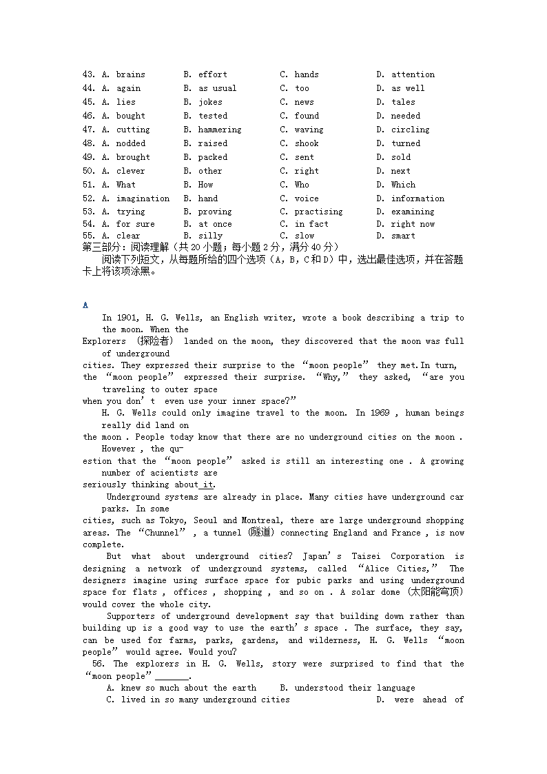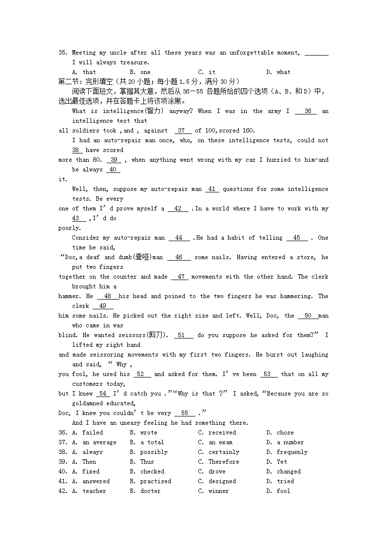 【文档预览】 无忧考网整理发布2002年浙江高考英语真题及答案(Word版),前五页预览如下: