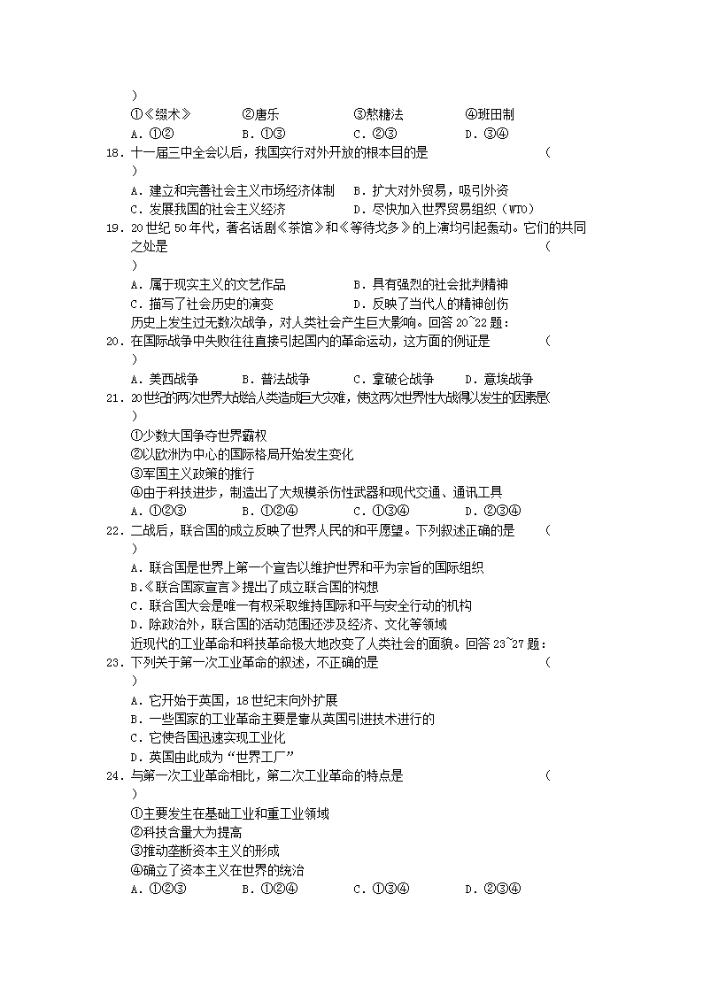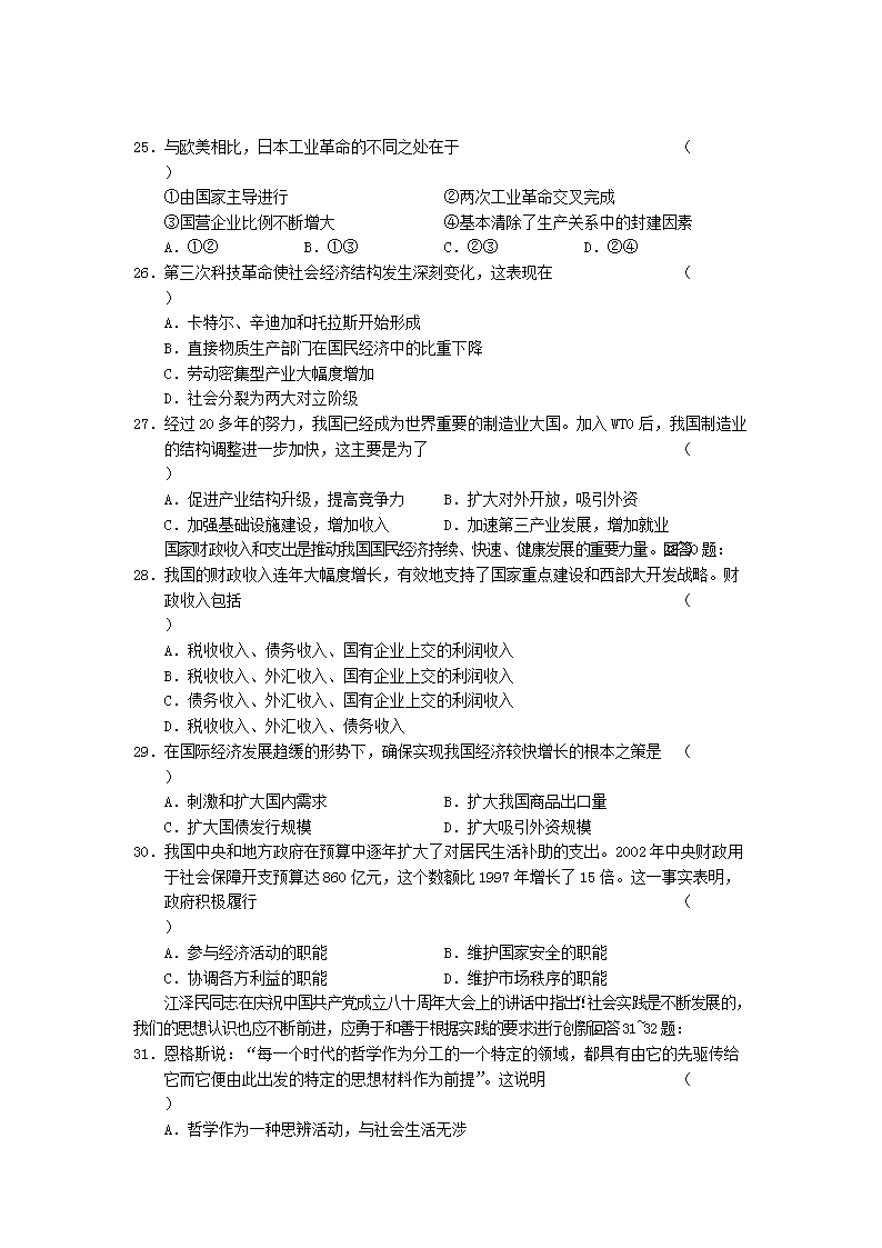 【文档名称】 2002年江西高考文科综合真题及答案(Word版).doc