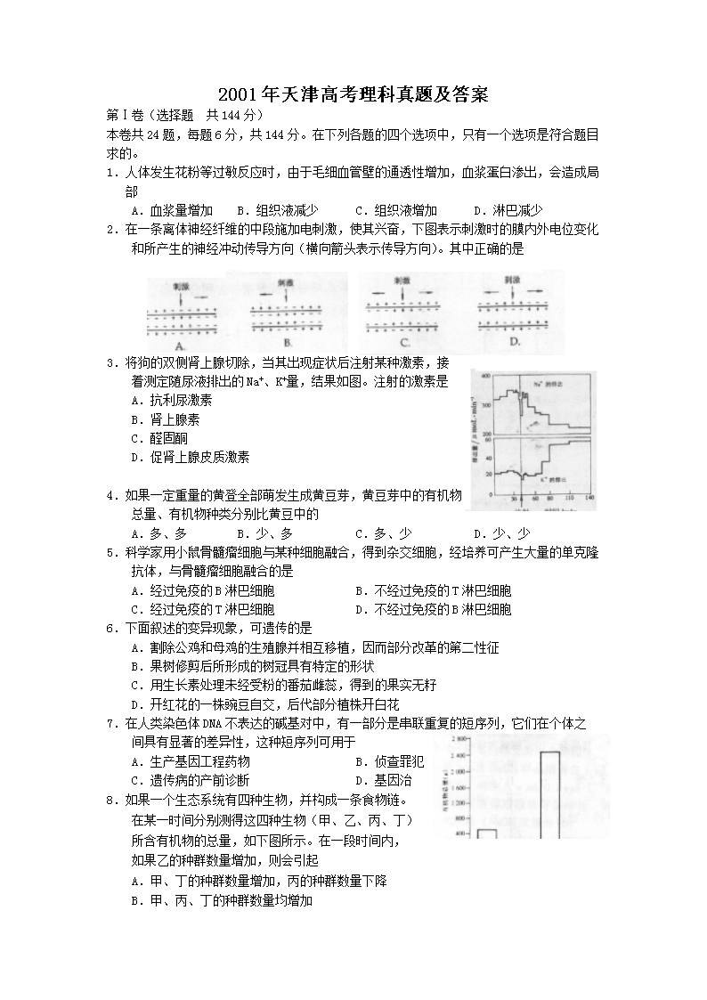 【文档预览】 无忧考网整理发布2001年天津高考理科真题及答案(Word版),前五页预览如下:
