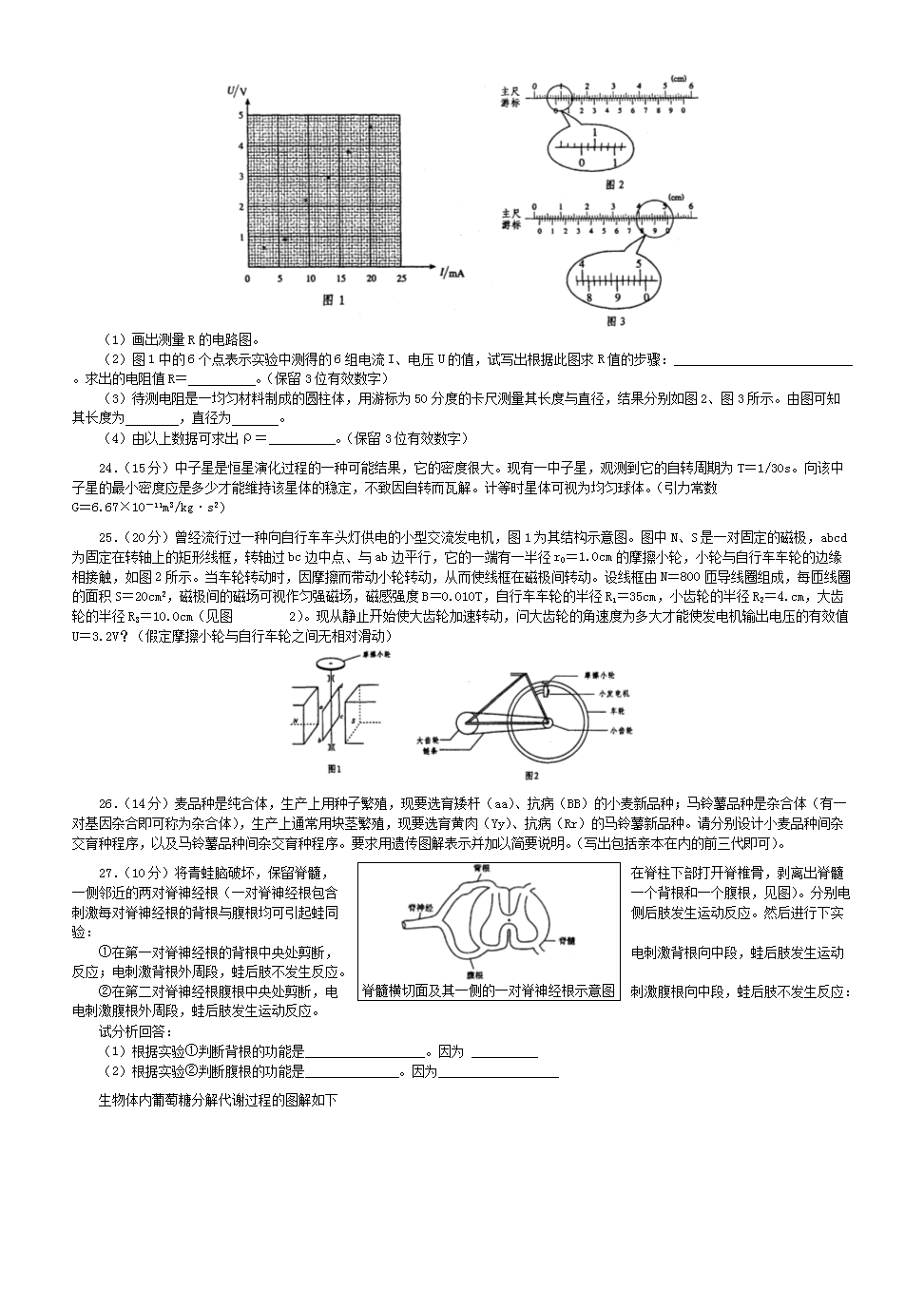 【文档名称】 2003年江西高考理综真题及答案(Word版).doc