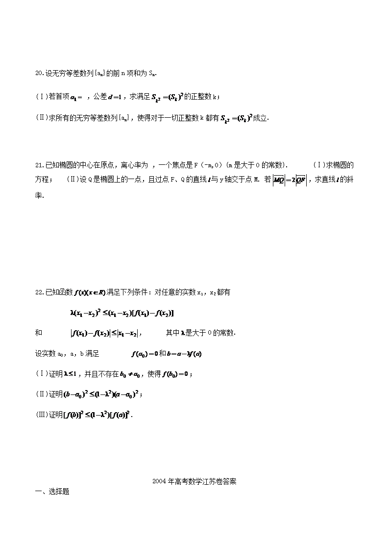 【文档预览】 无忧考网整理发布2004年江苏高考数学真题及答案(Word版),前五页预览如下: