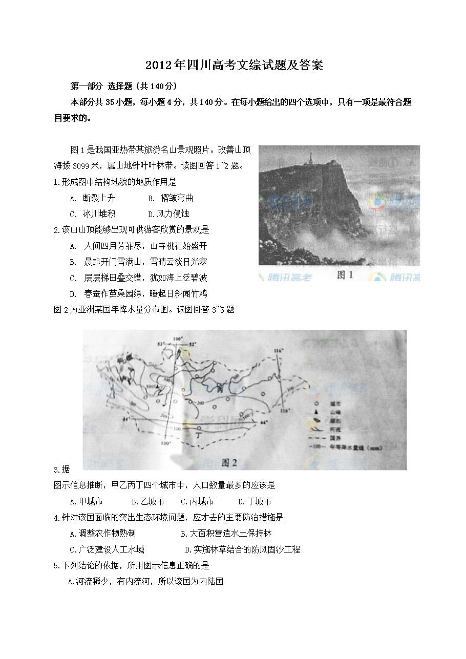 【文档预览】 无忧考网整理发布2012年四川高考文综试题及答案(Word版),前五页预览如下: