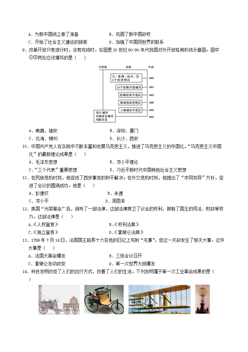 【文档名称】 2020年广西柳州市中考历史真题及答案(Word版).doc