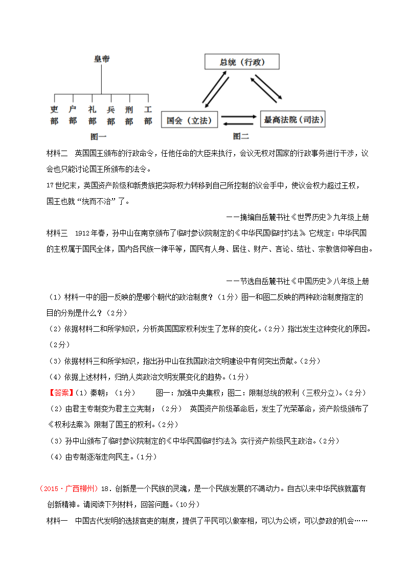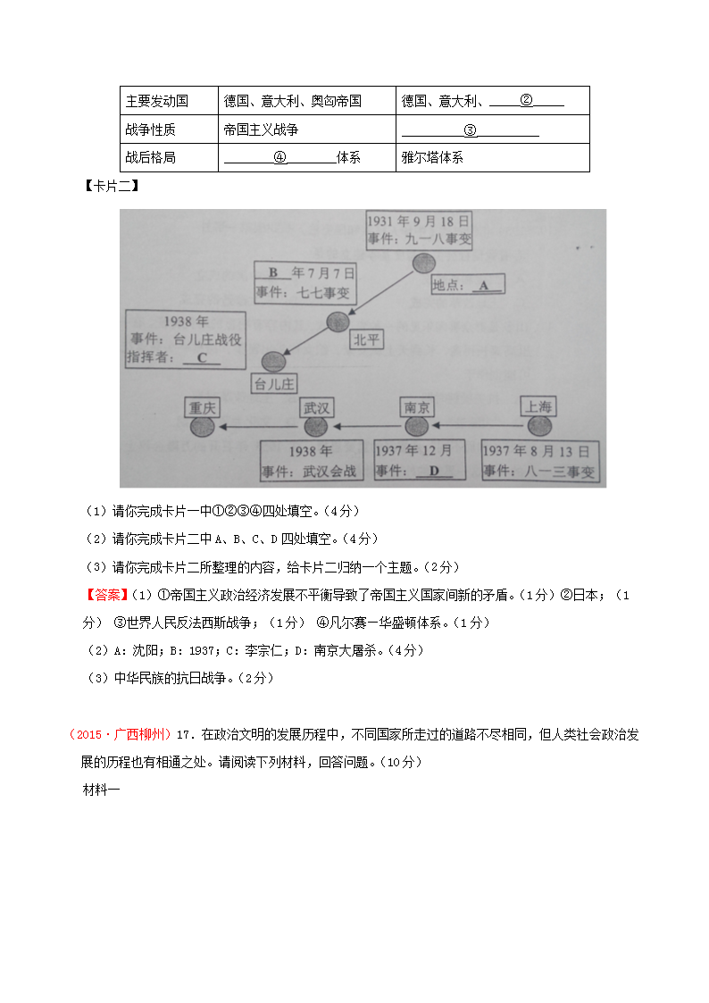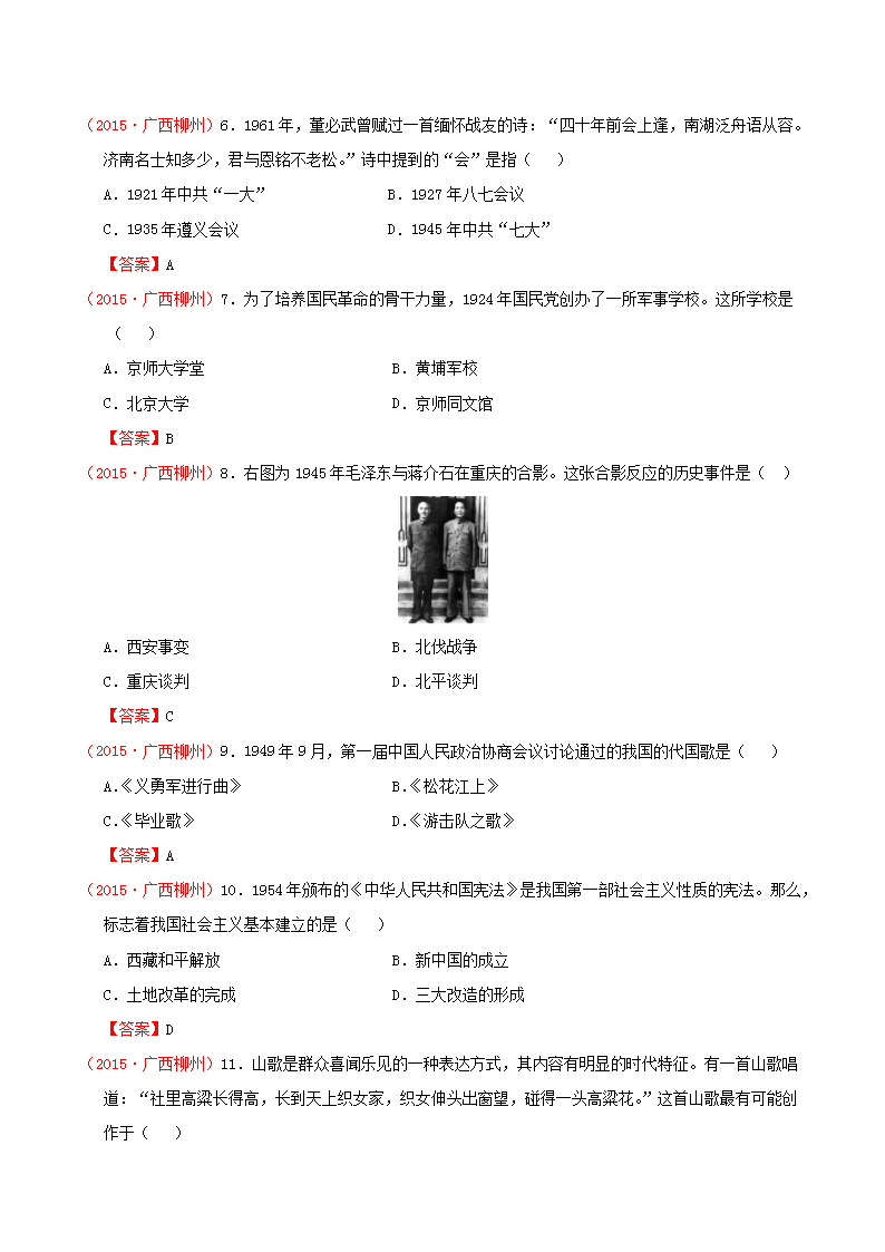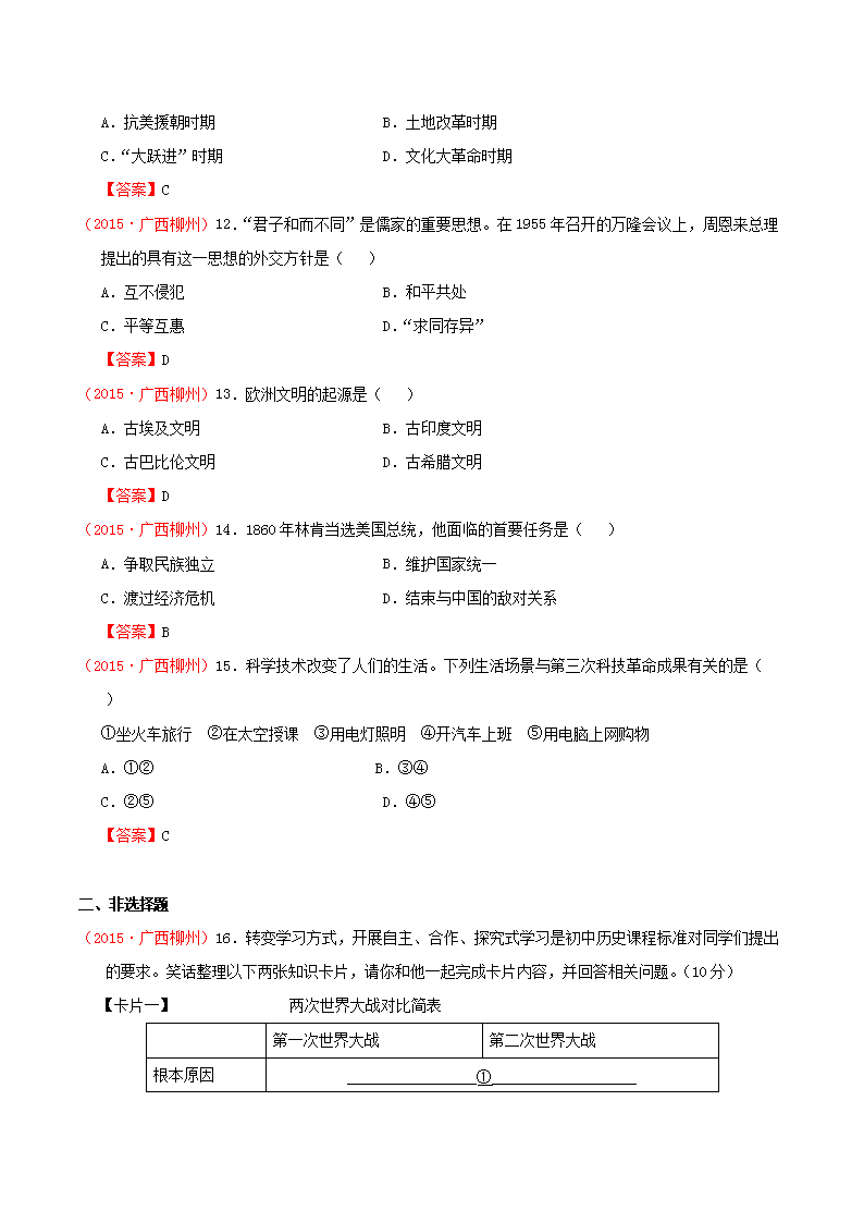 【文档名称】 2015年广西柳州市中考历史真题及答案(Word版).doc