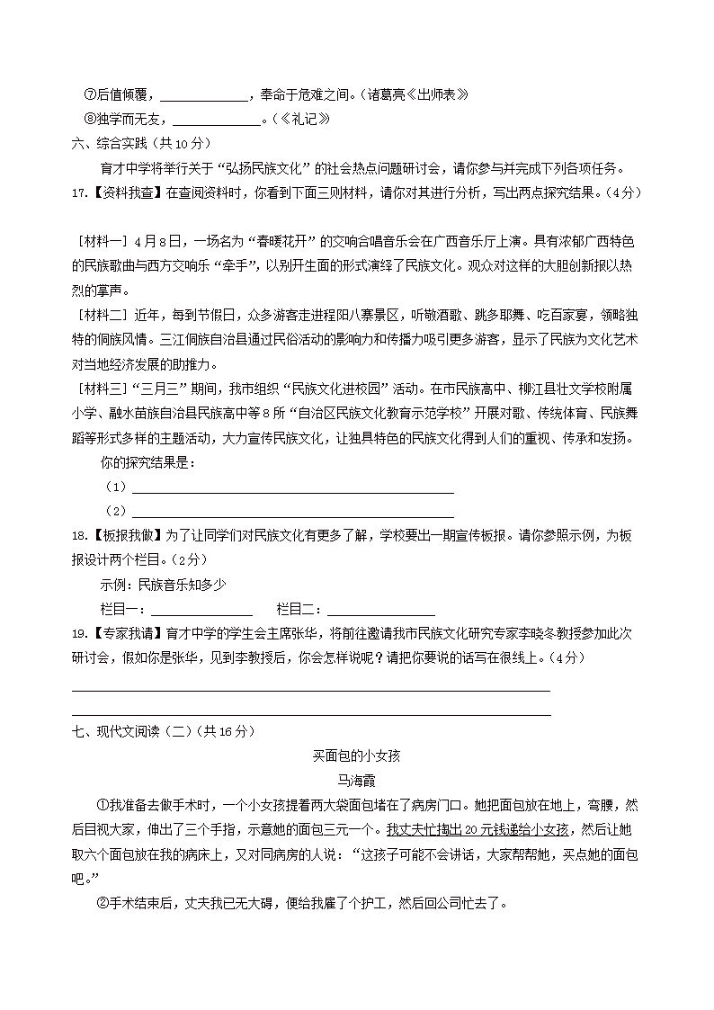 【文档名称】 2016年广西柳州市中考语文真题及答案(Word版).doc