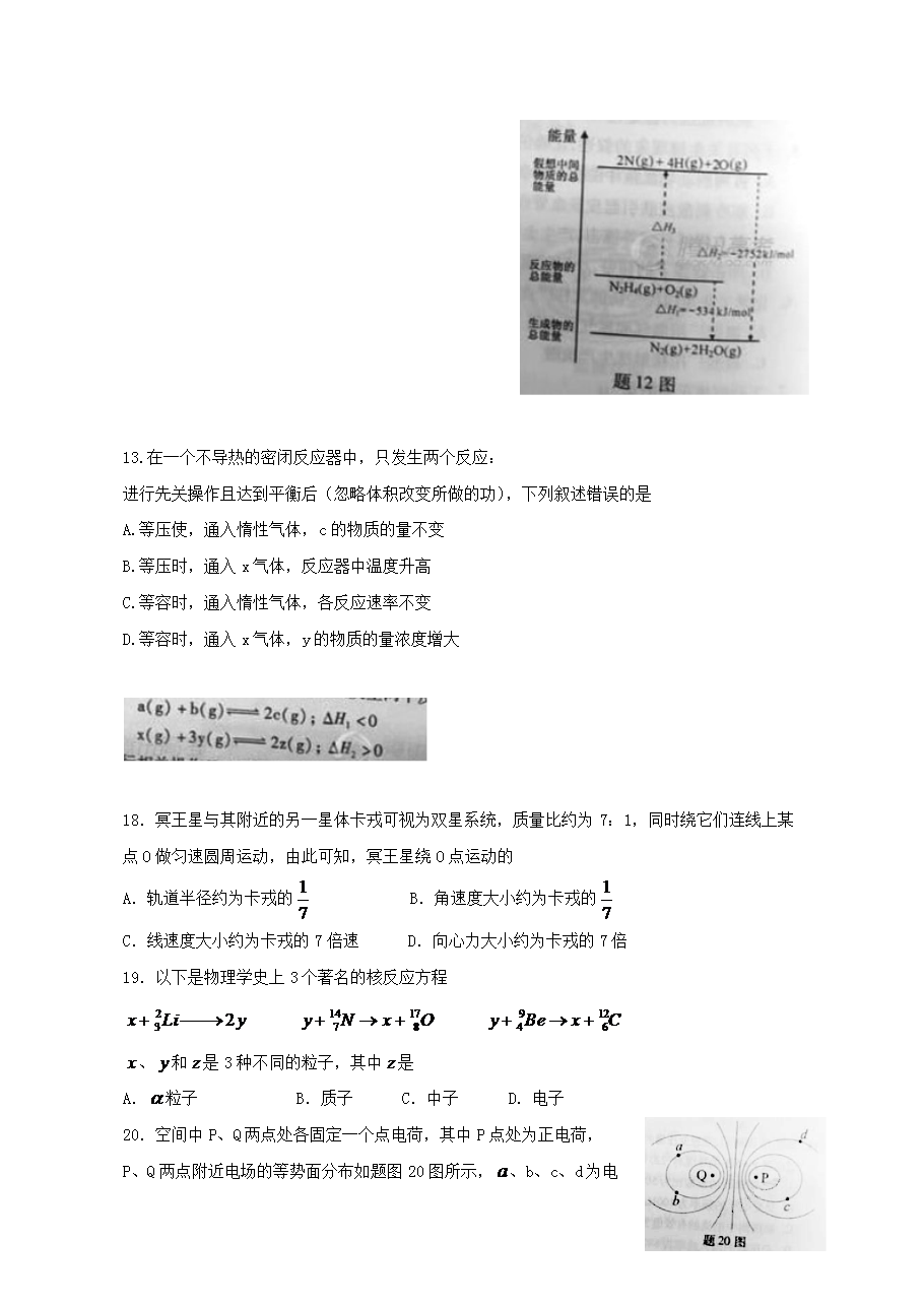 【文档名称】 2012年重庆高考理综试题及答案(Word版).doc