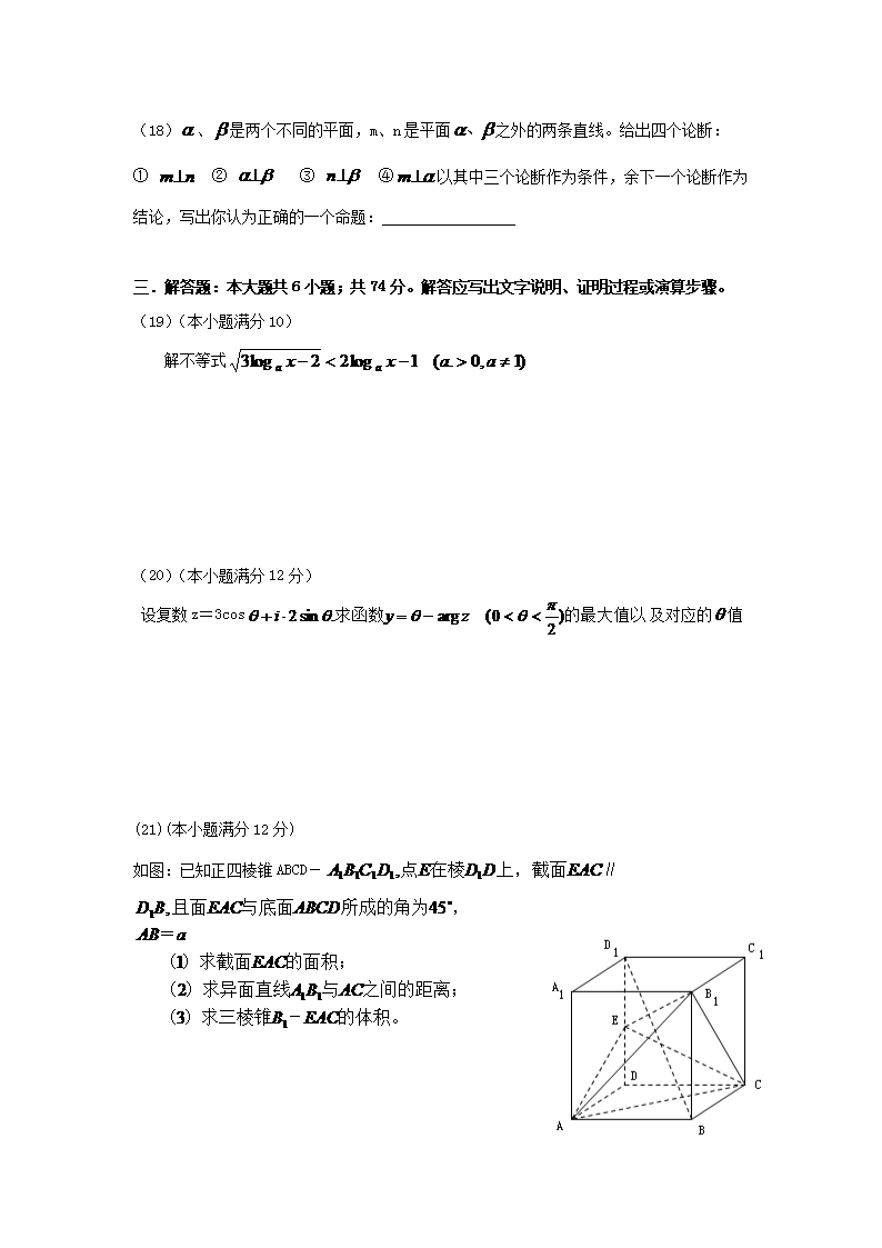 【文档预览】 无忧考网整理发布1999年吉林高考理科数学真题及答案(Word版),前五页预览如下:
